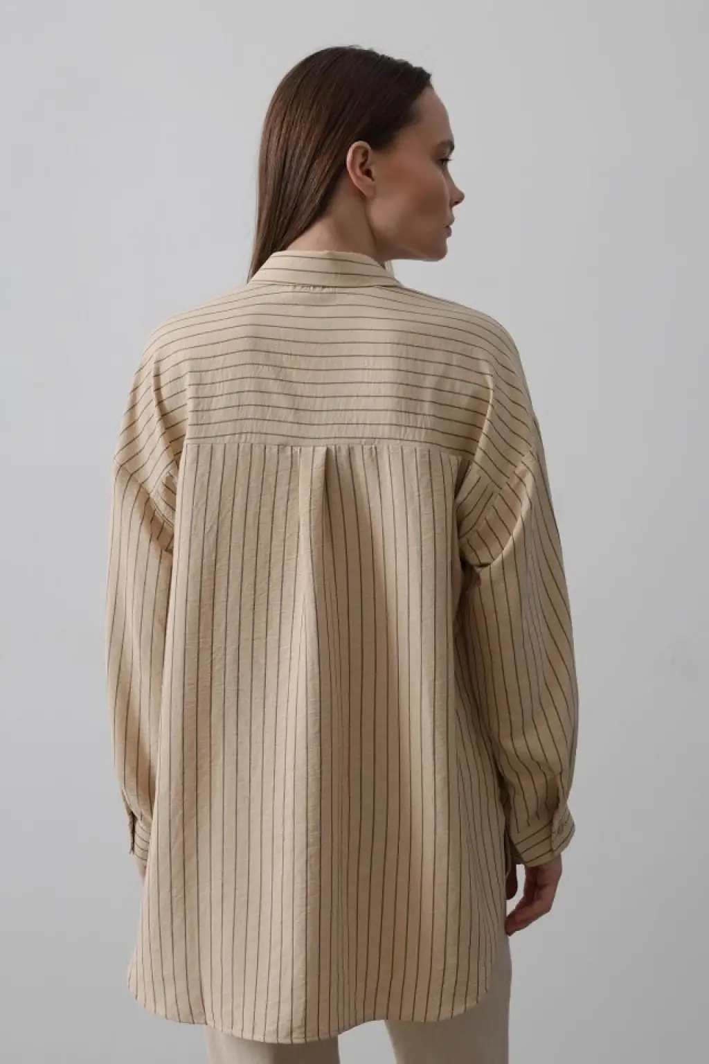 Çizgili Oversize Gömlek 20293 - Kahverengi