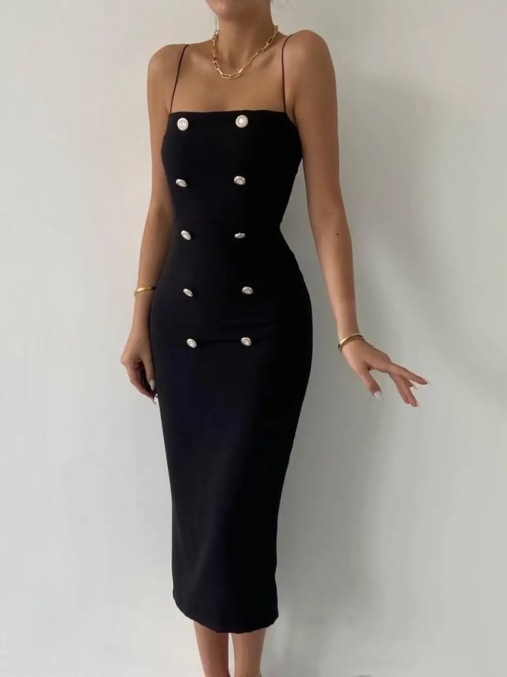 Kadın Truvakar Kol çift Renkli Düğmeli Kısa Ithal Krep Elbise