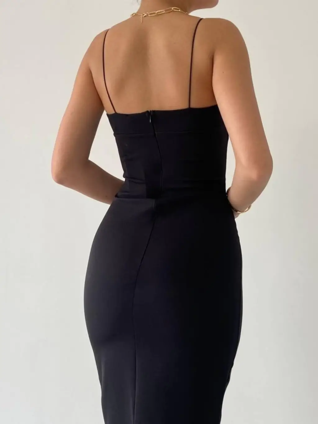 Kadın Uzun Kollu Kare Yakalı Midi şardonlu Kaşkorse Elbise