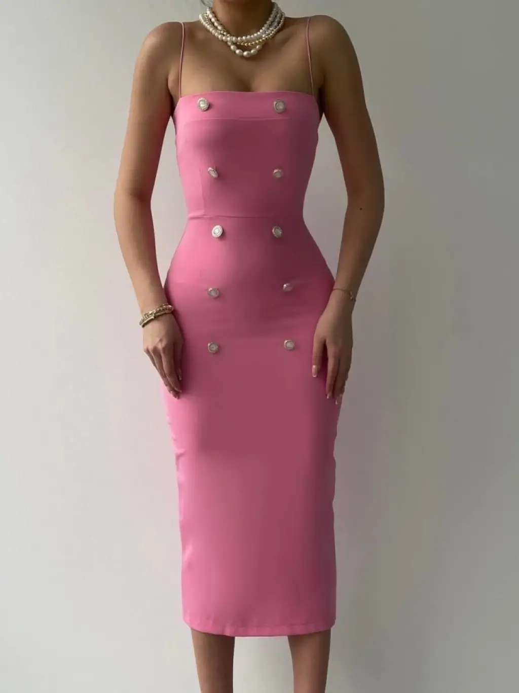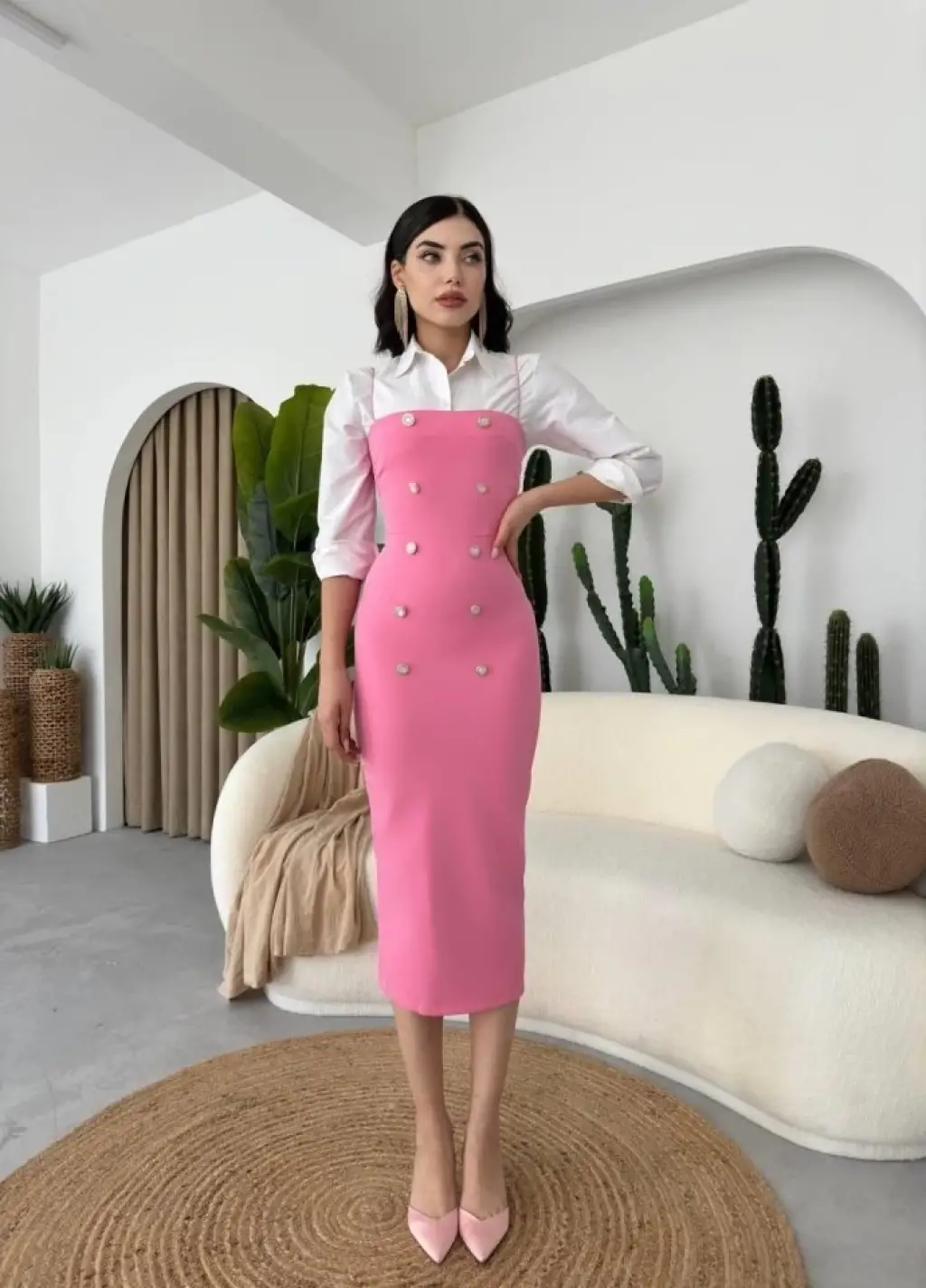 Kadın Truvakar Kol çift Renkli Düğmeli Kısa Ithal Krep Elbise