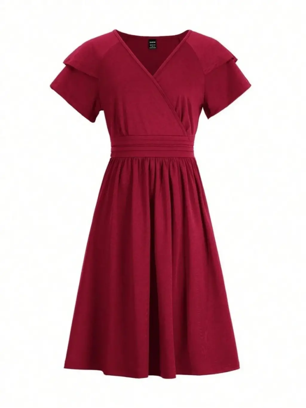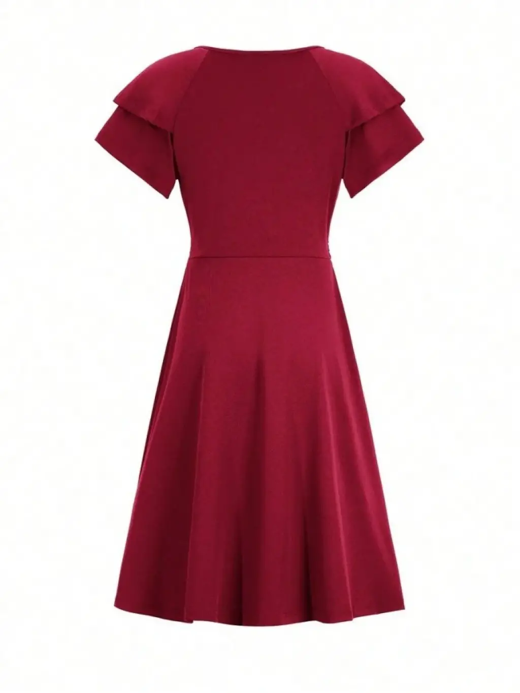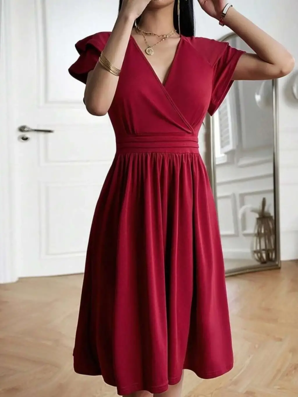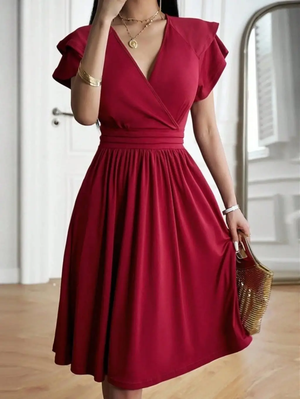 Kadın Kısa Fırfır Kollu Kruvaze Yakalı Kiloş Janjan Krep Elbise