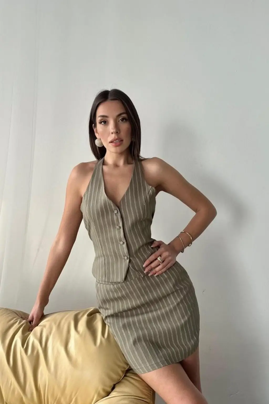 Kadın Düğme Ve Blise Detay Arkası Lastikli Takım