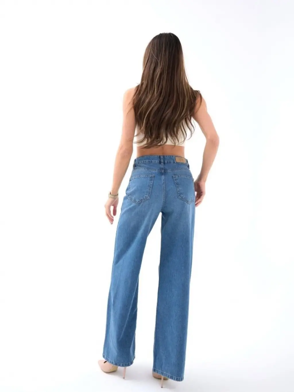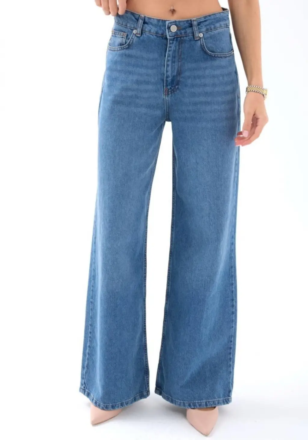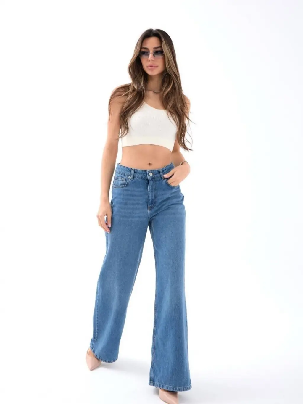Bol Paça Yüksek Bel Palazzo Kot Pantolon 6656 - Mavi