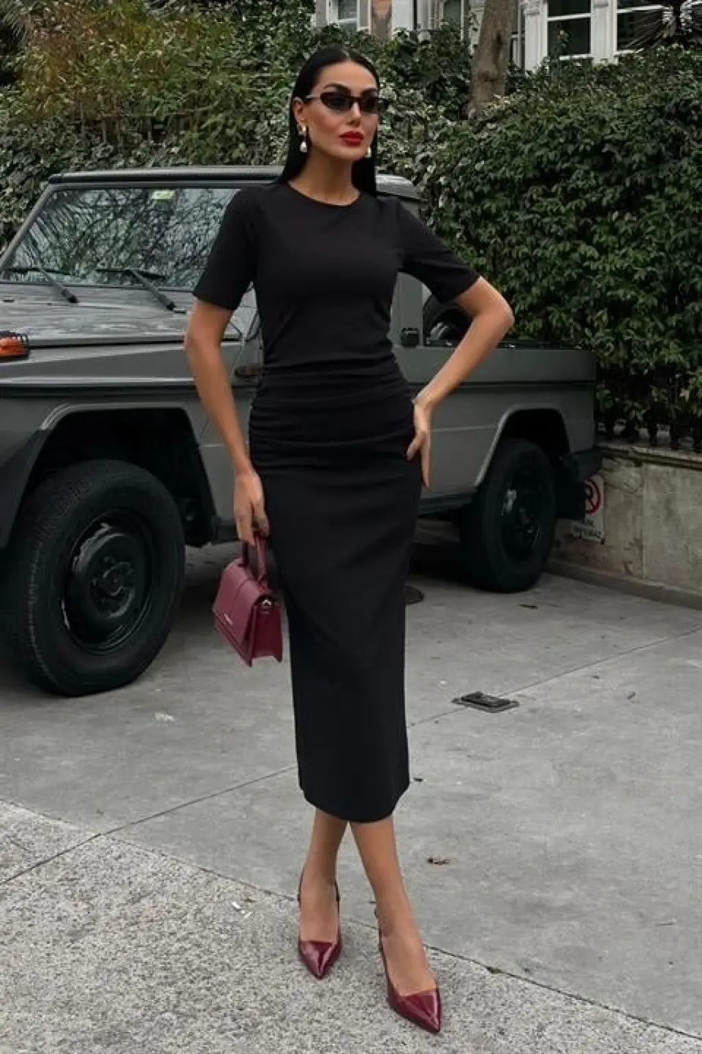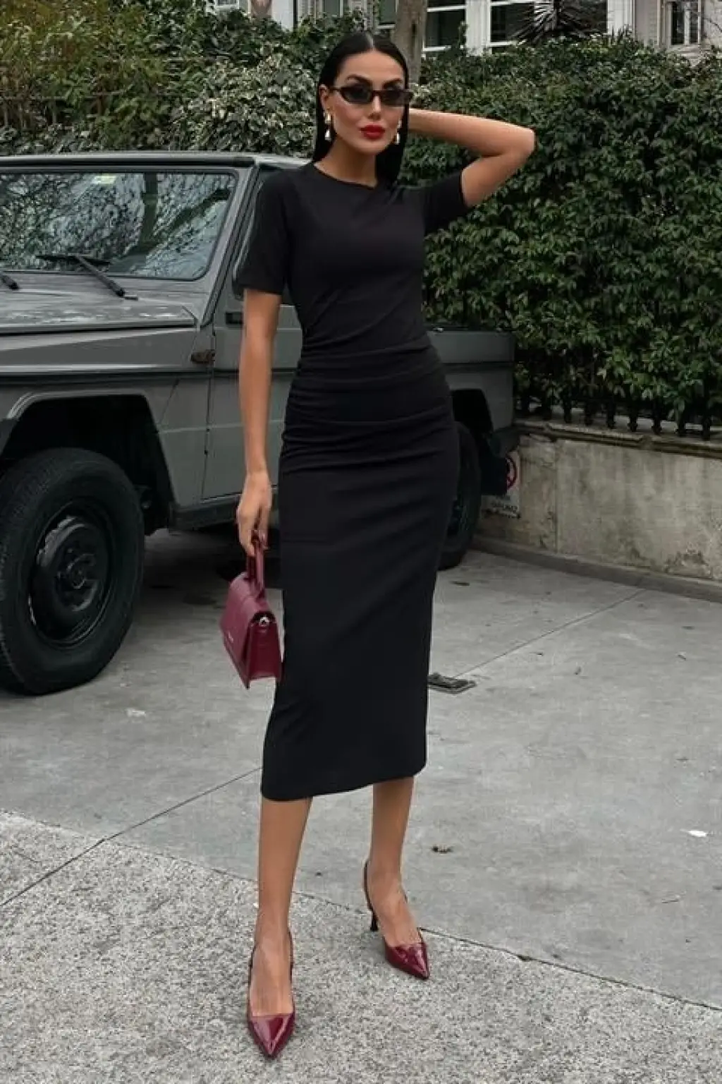 Beli Büzgülü Midi Elbise 2853