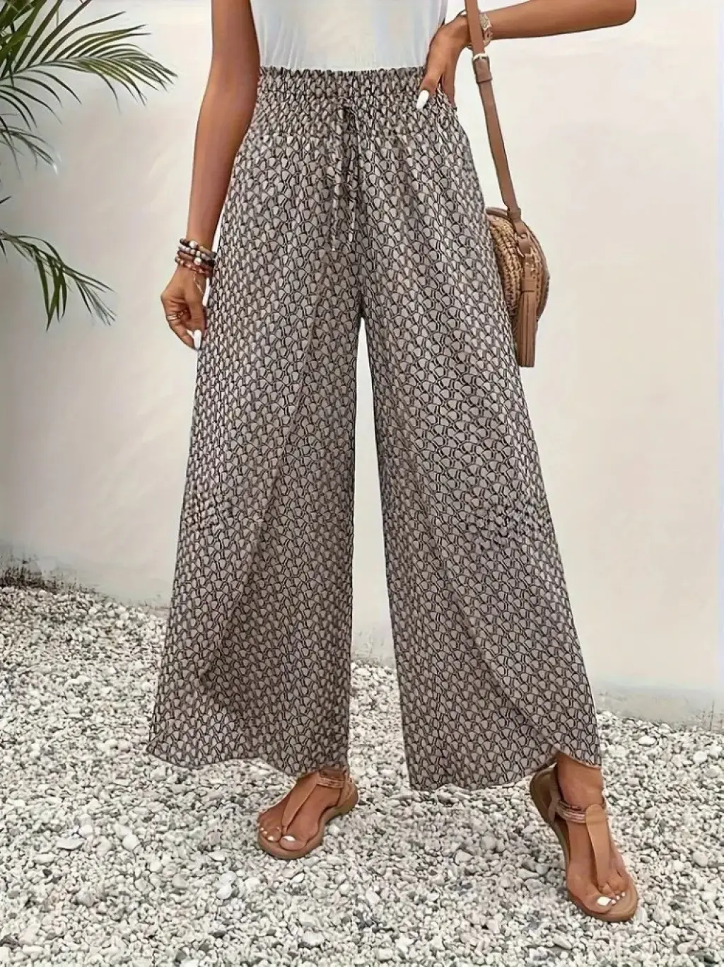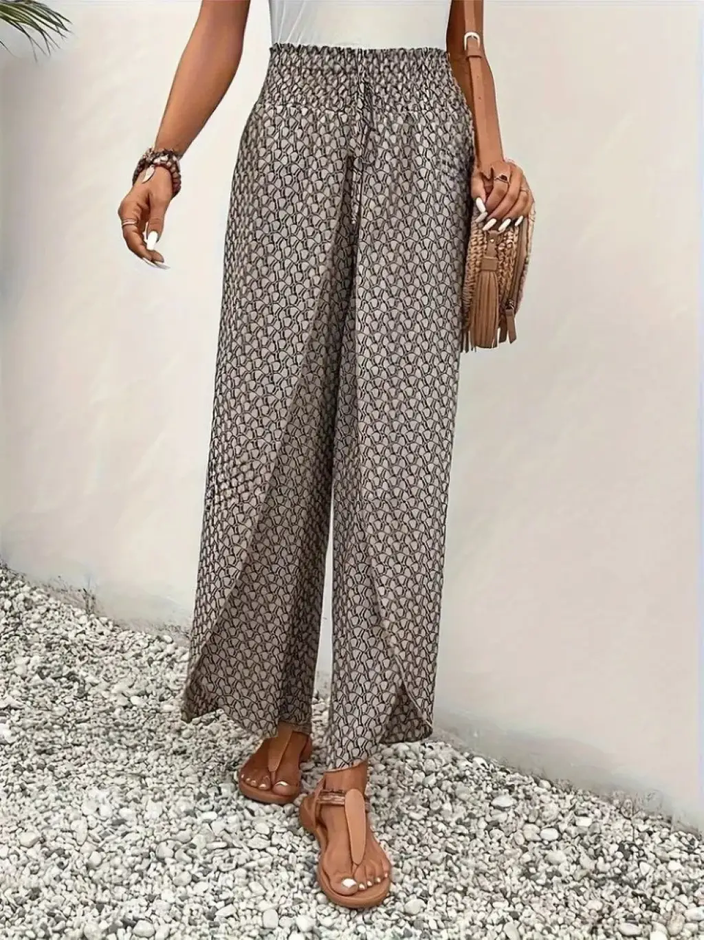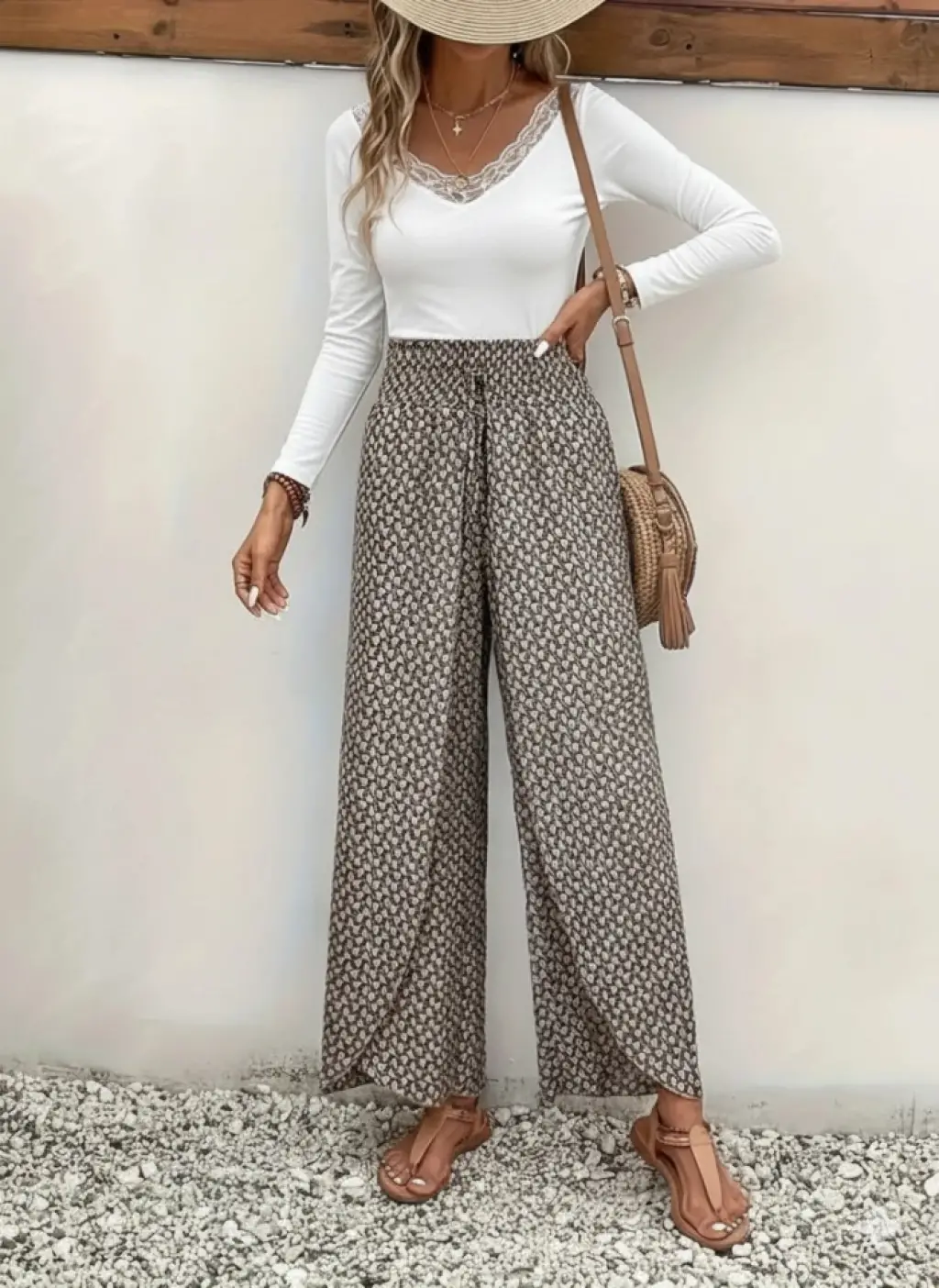 Kadın Yüksek Bel Lastikli önden Iki Parçalı Desenli Bürümcük Pantolon