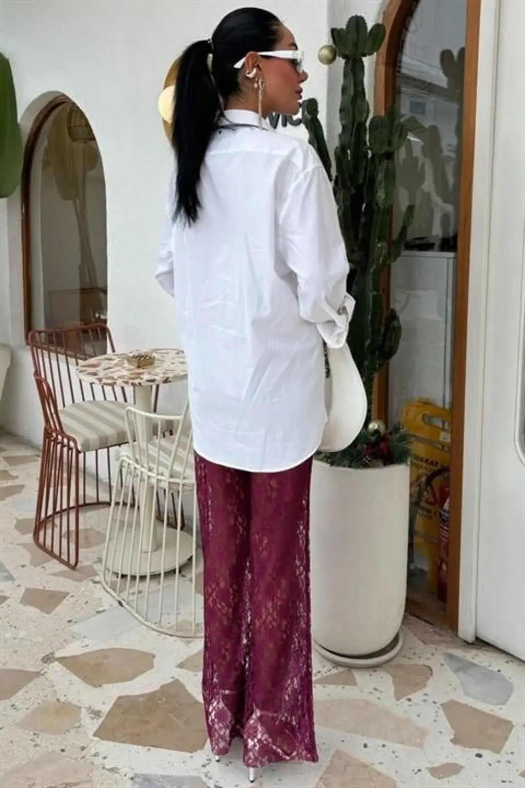 Kadın Uzun Kollu Hakim Yaka Tül Detay Ithal Krep Bluz