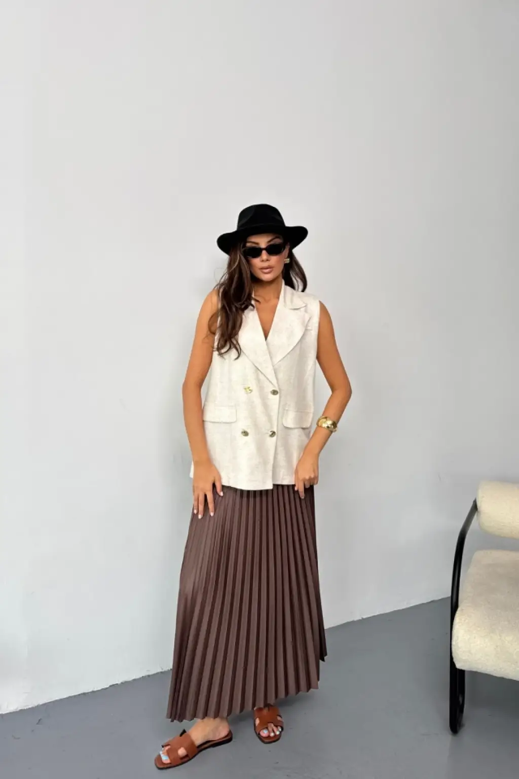 GOLD DÜĞMELİ KETEN YELEK - Kahverengi