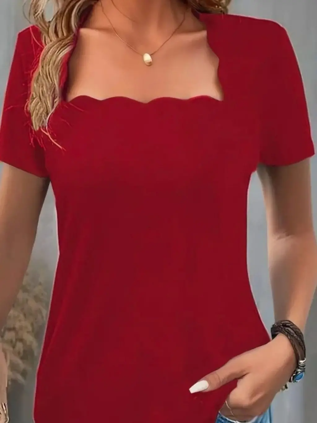 Kadın Kısa Kollu Kare Lazer Yakalı Janjan Krep Bluz