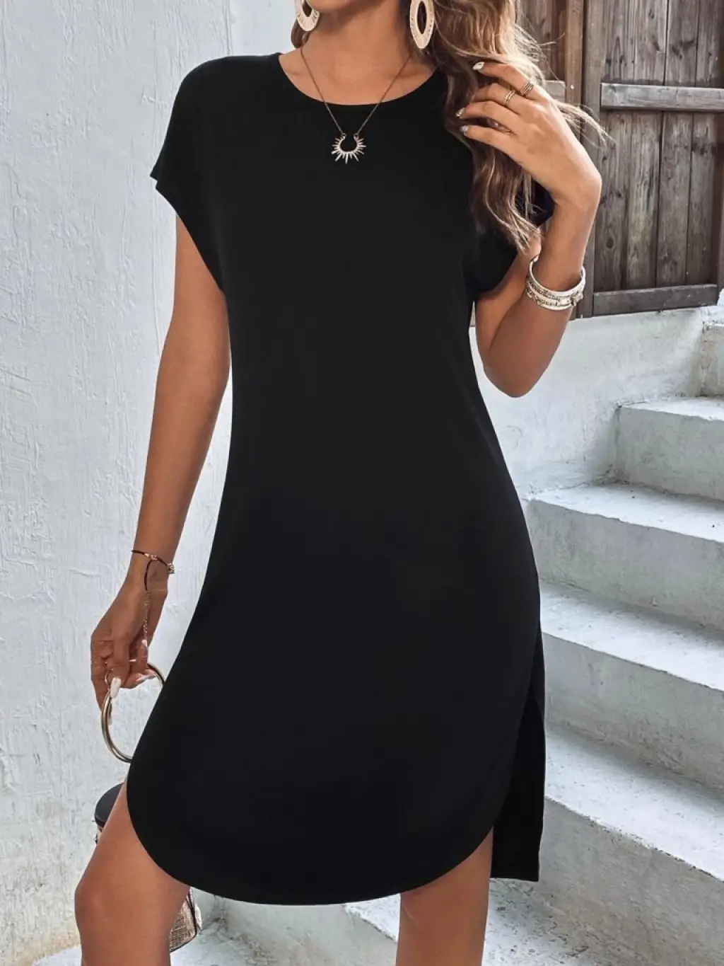 Kadın Kısa Kollu Bisiklet Yaka Viskon Iki Iplik Elbise