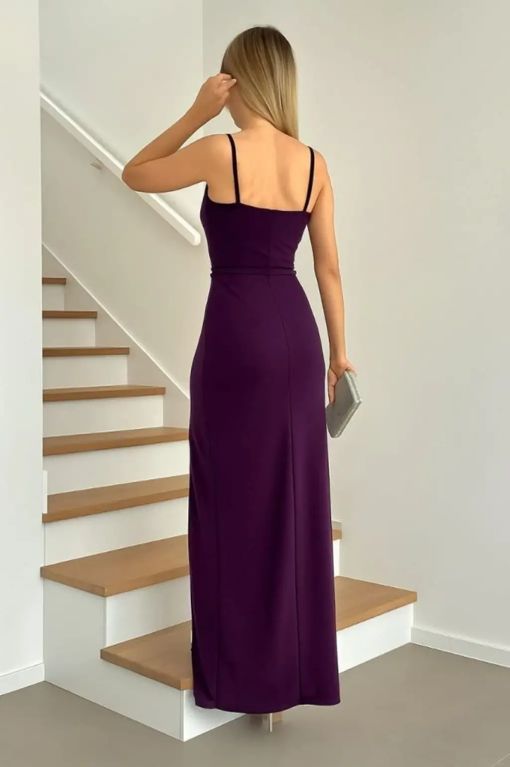 Kadın Dalgıç Kumaş V Yaka Yırtmaç Detaylı Maxi Boy Elbise