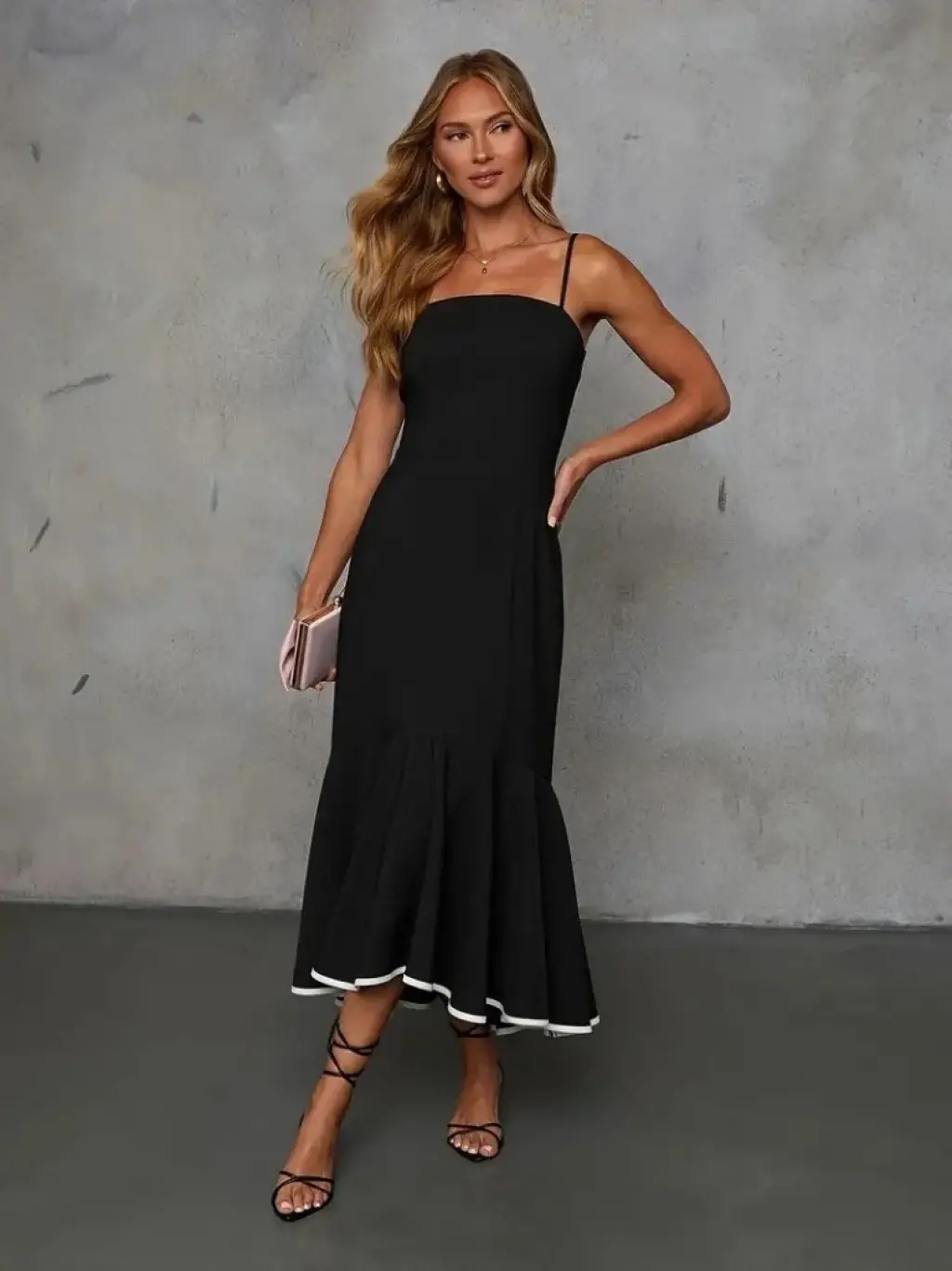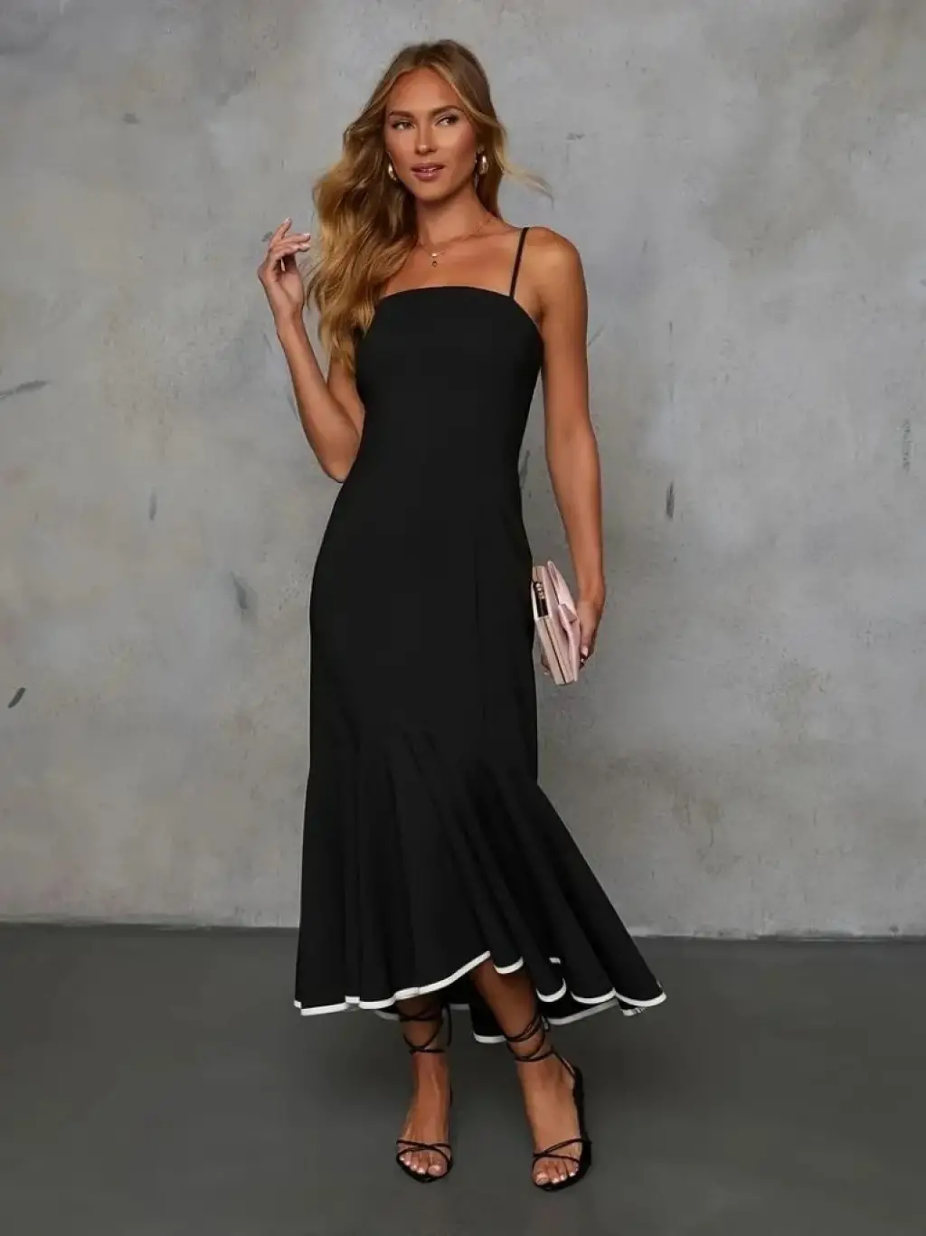 Kadın Ip Askılı Straplez Kesim Detay Maksi Boy Janjan Krep Elbise