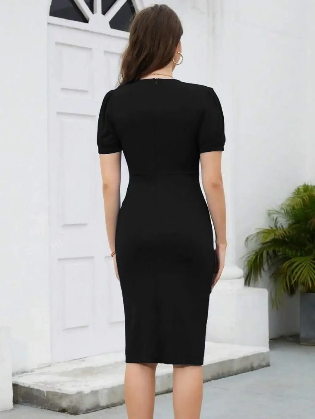 Kadın Kısa Kollu Yakadan Ve Etekten Fermuarlı Midi Viskon Iki Iplik Elbise