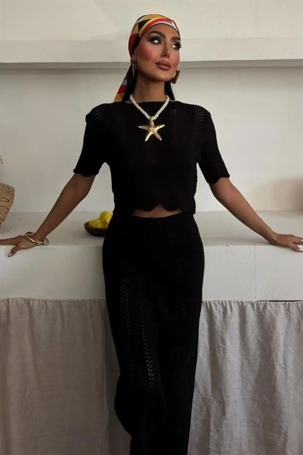 Kimono Pantolon Kumaş Takım 30054 - Siyah