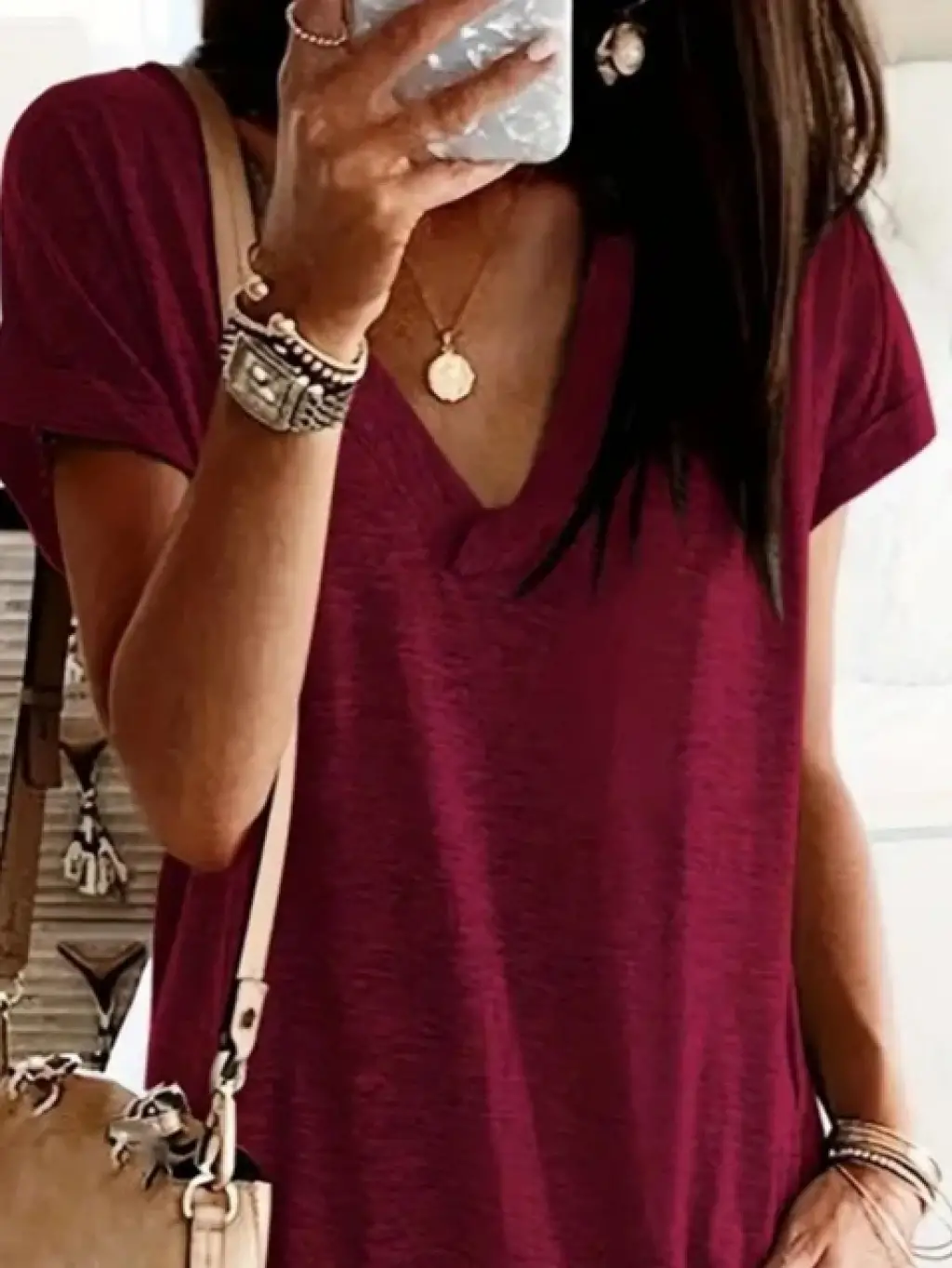 Kadın Kısa Kollu V Yaka Maxi Boy Elbise 124 Cm