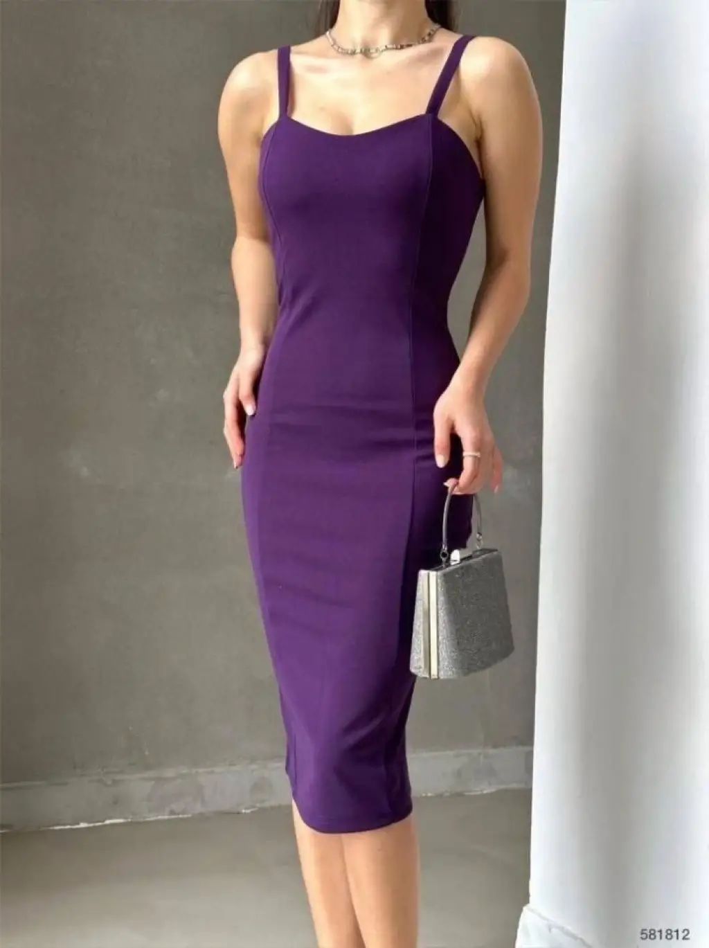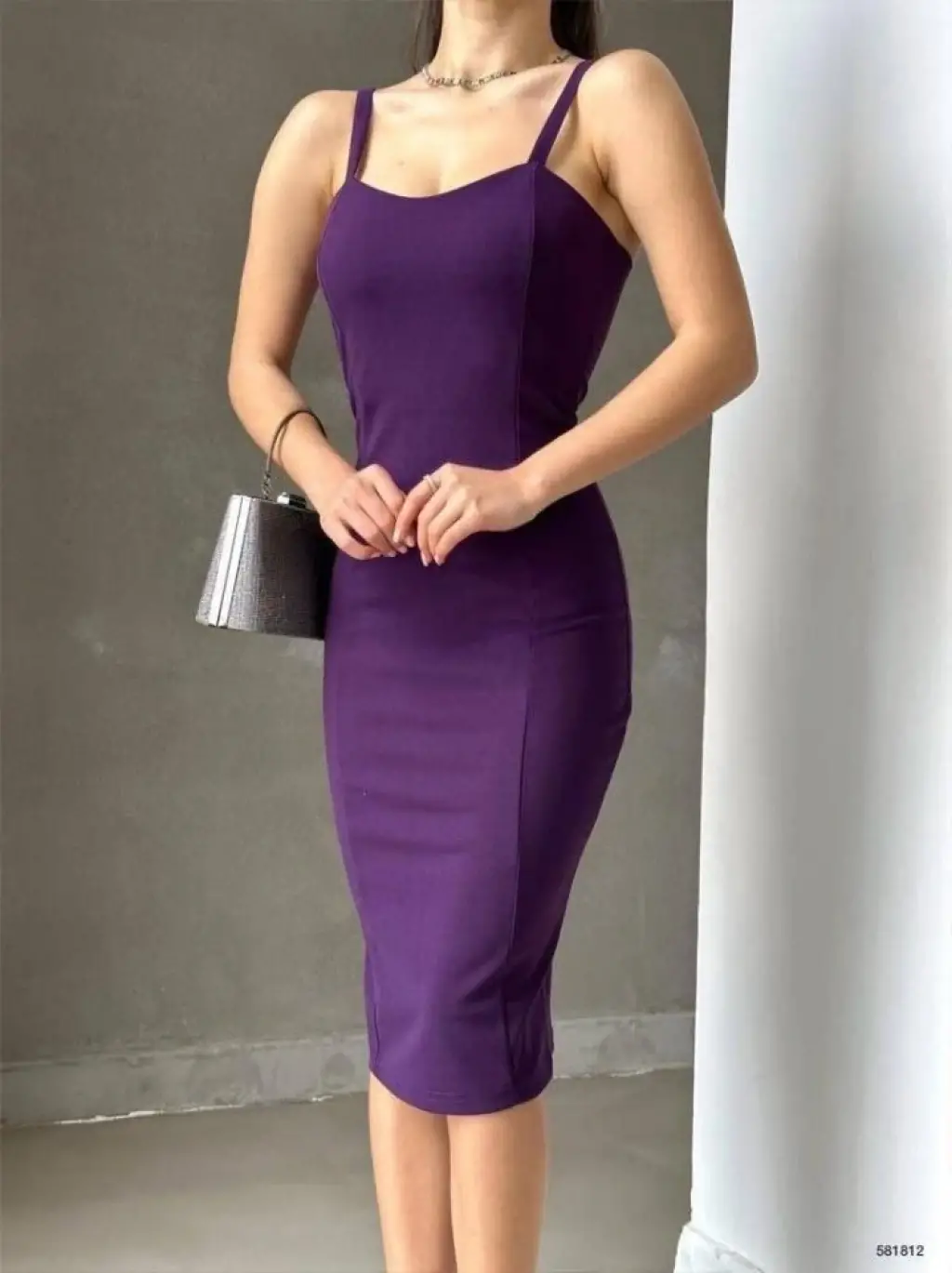 Kadın Dalgıç Krep Kumaş Askılı Midi Boy Elbise