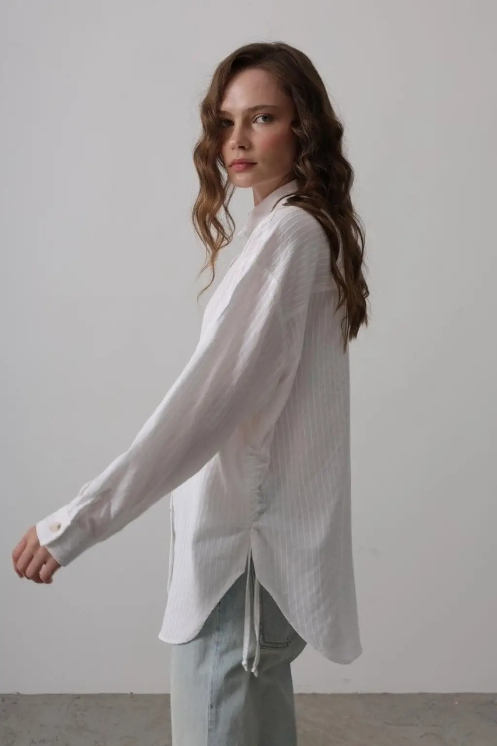 Yan Büzmeli Tunik Gömlek - Beyaz
