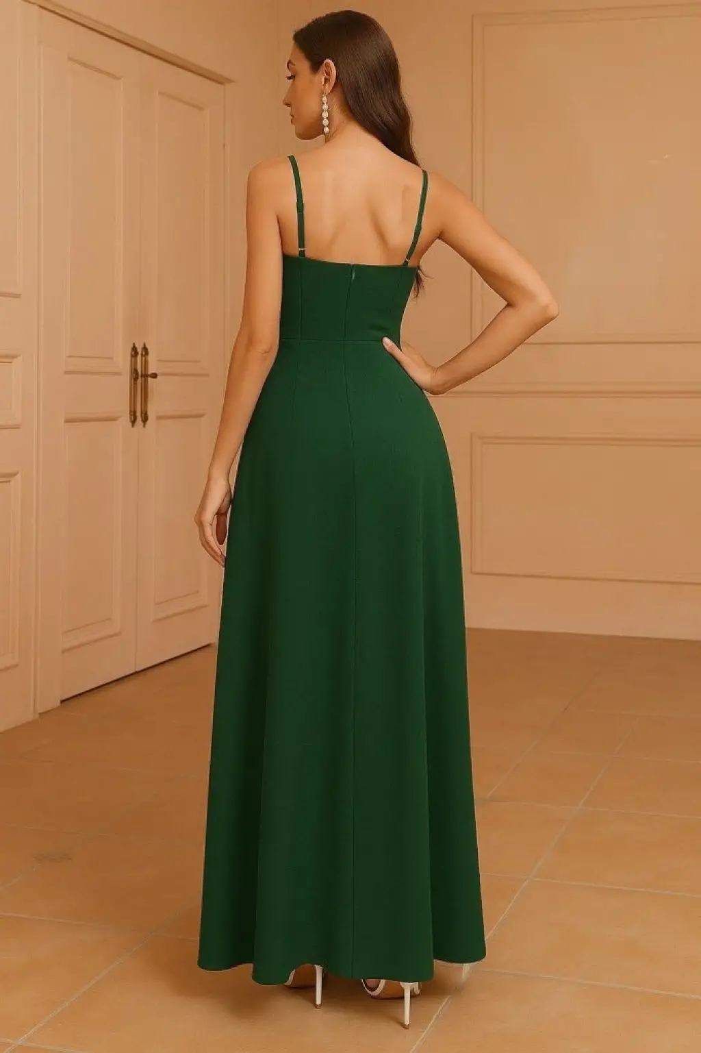 Kadın Ip Askılı Kruvaze Yakalı Derin Dekolteli Yırtmaçlı Ithal Krep Elbise