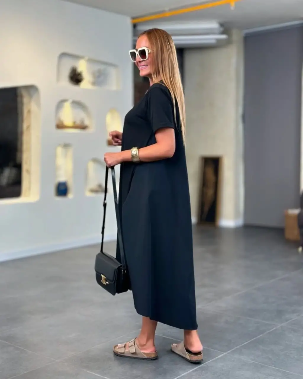 Kadın Uzun Kollu Bisiklet Yaka Yazılı Viskon Iki Iplik Elbise