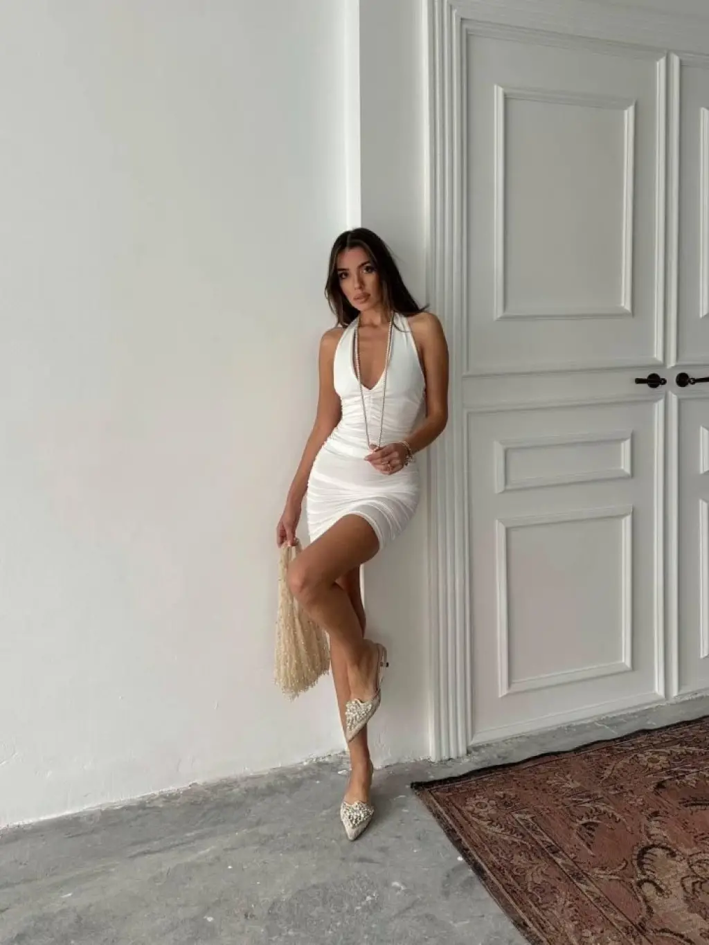 Kadın Kolsuz Omzu Volanlı Bisiklet Yaka Kaşkorse Mini Elbise
