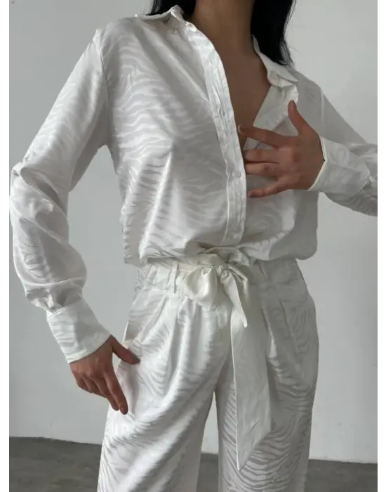 Kadın Uzun Kollu Degaje Yaka Taşlı Sandy Bluz