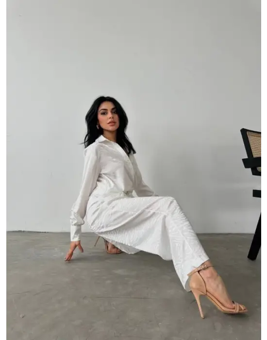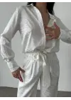 Kadın Uzun Kollu Damla Detaylı Viskon Iki Iplik Bluz