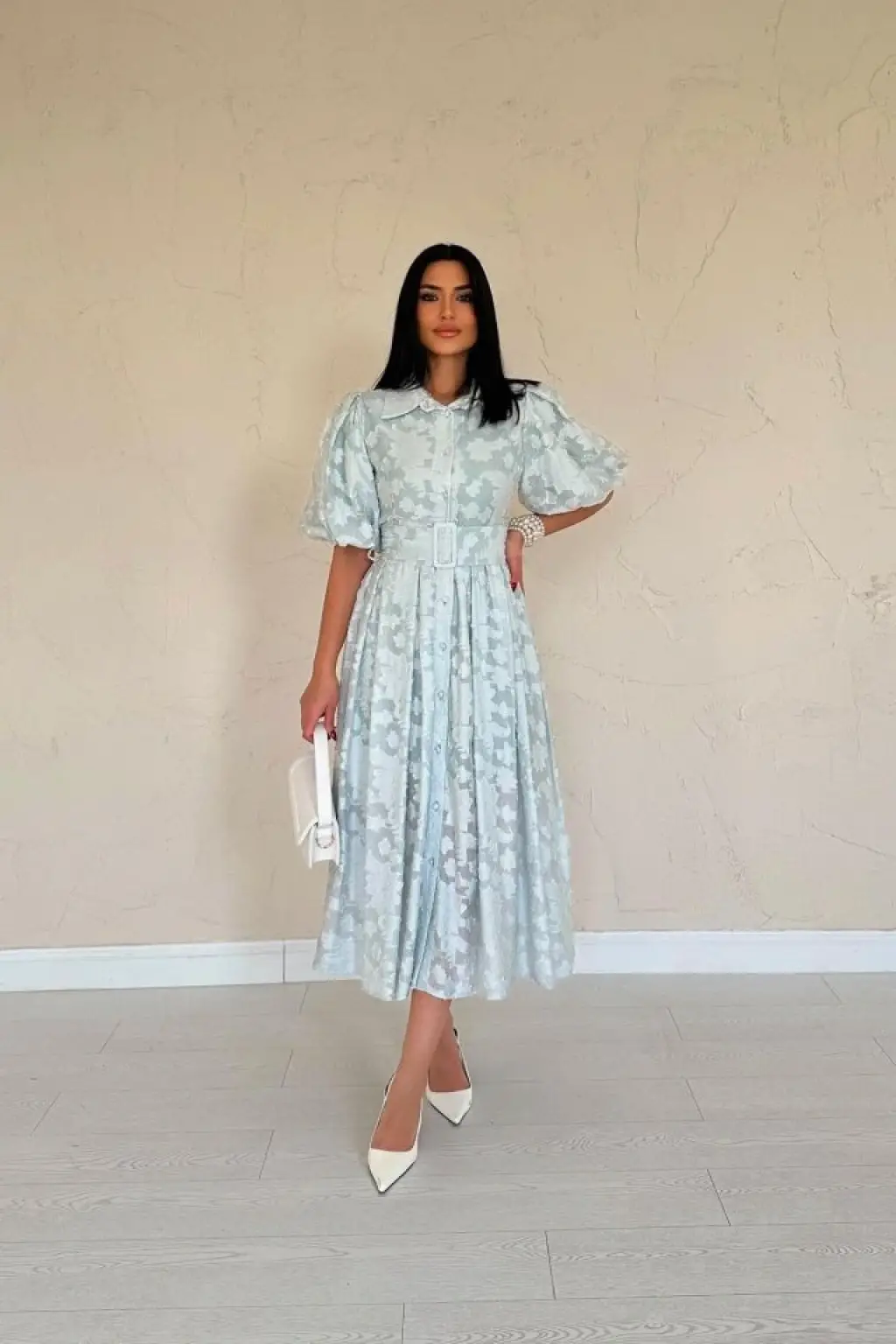 Kadın Uzun Kollu Damla Detaylı Viskon Iki Iplik Bluz