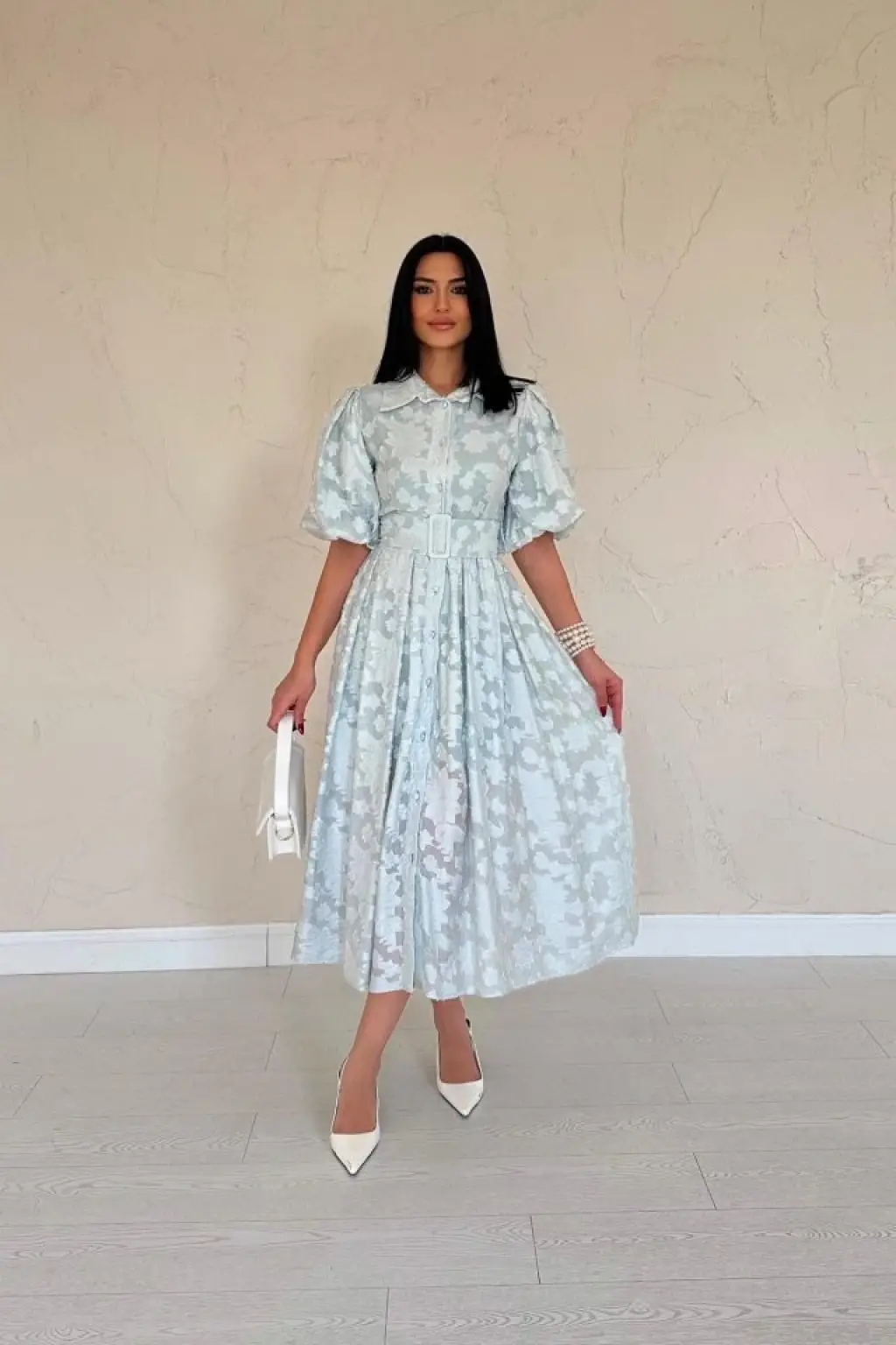 Kadın Uzun Kollu Bisiklet Yaka Kolları çiçekli Waffle Bluz