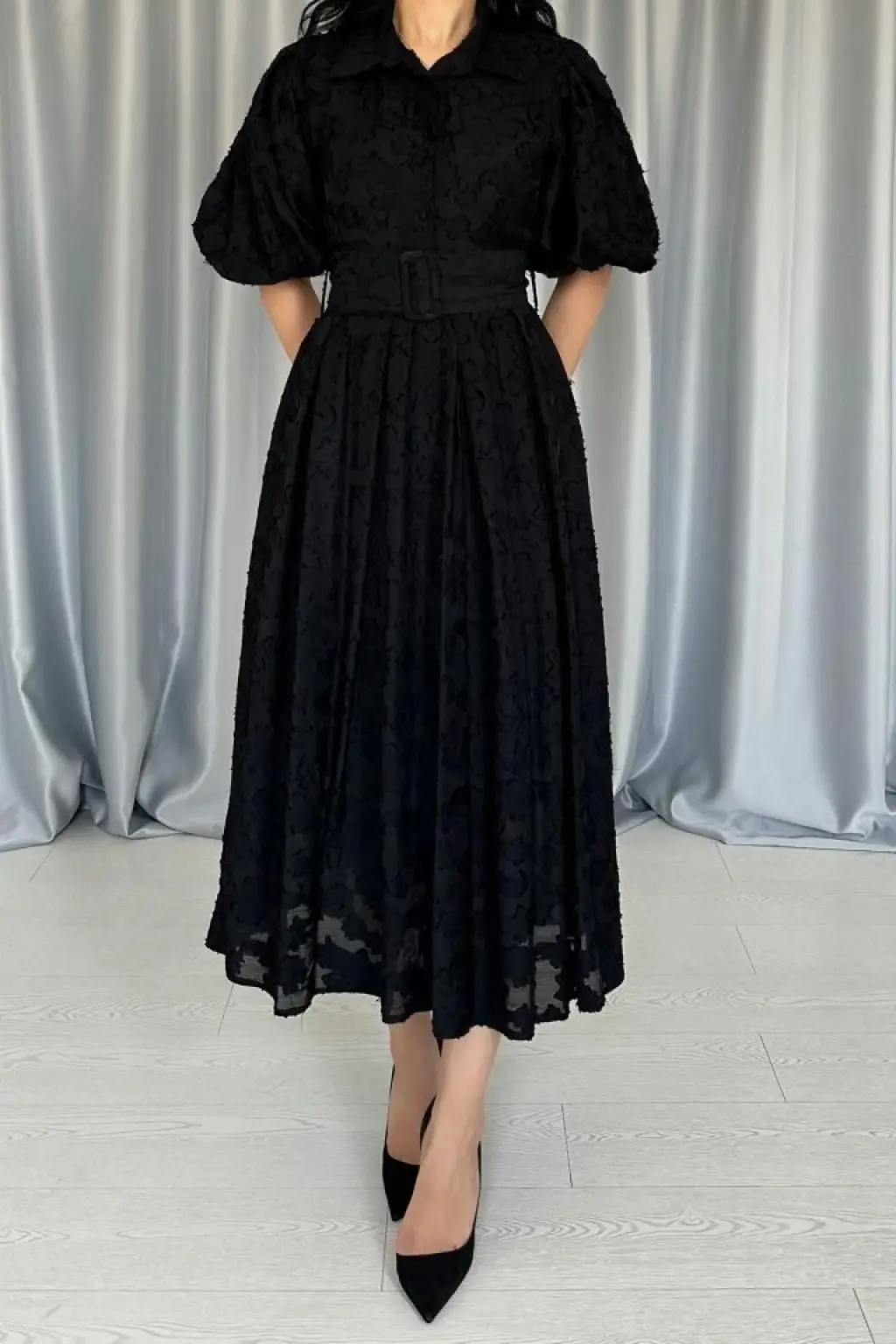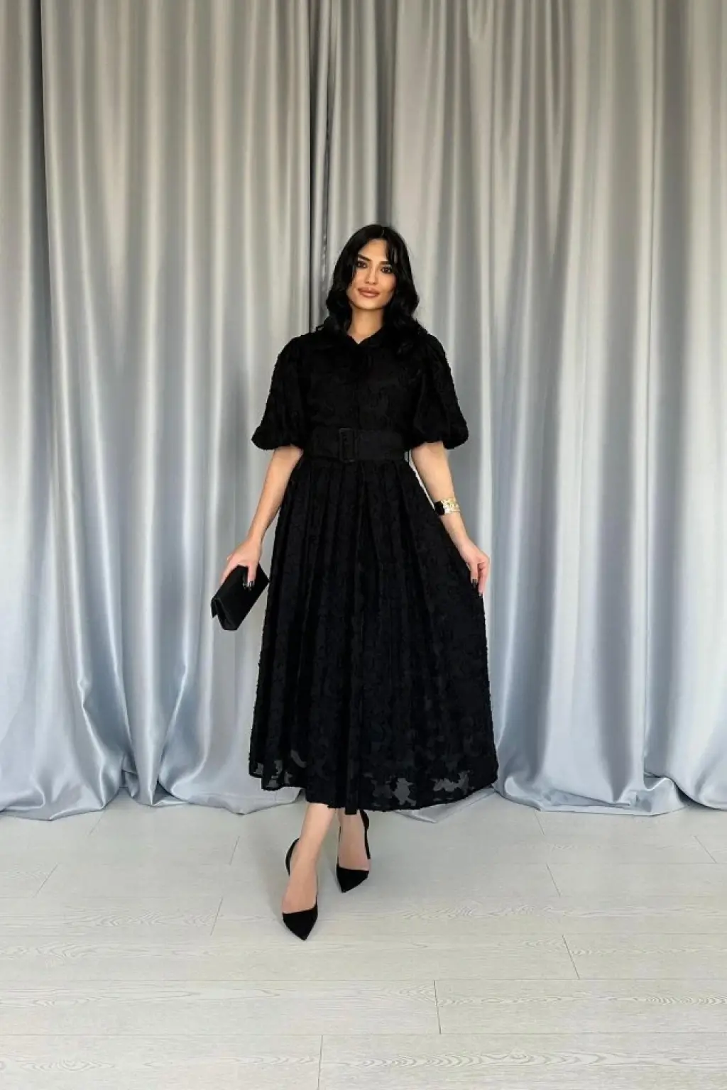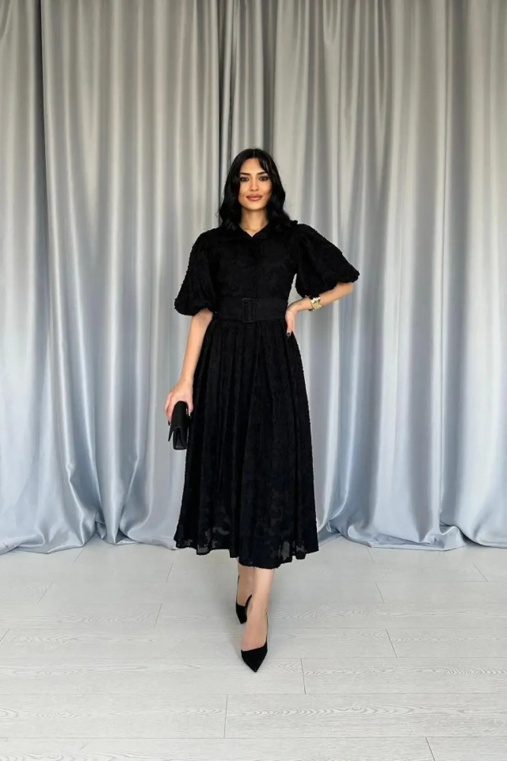 İthal Likralı Krep Kumaş Kiloş Çan Etek -Siyah