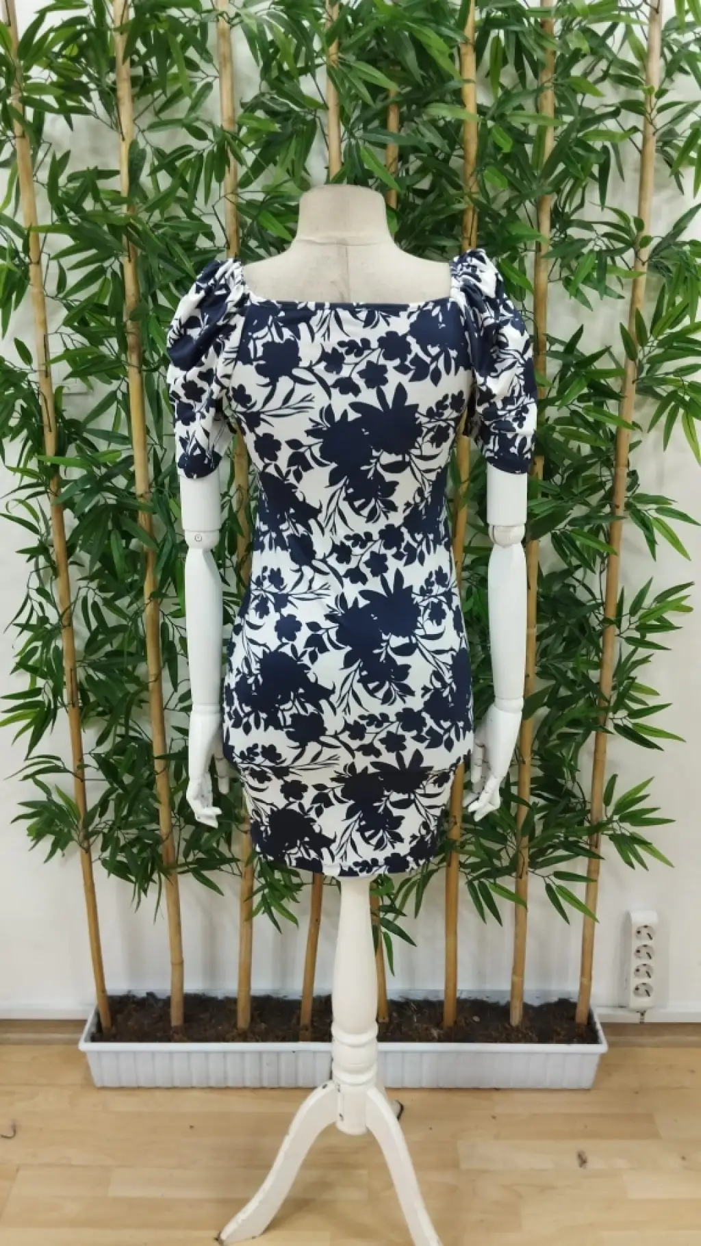 Omarı Çiçek Desenli Kısa Kollu Elbise
