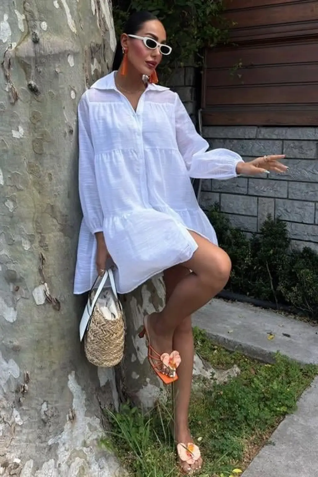 Kadın Uzun Kollu Hakim Yaka Tül Detay Ithal Krep Bluz