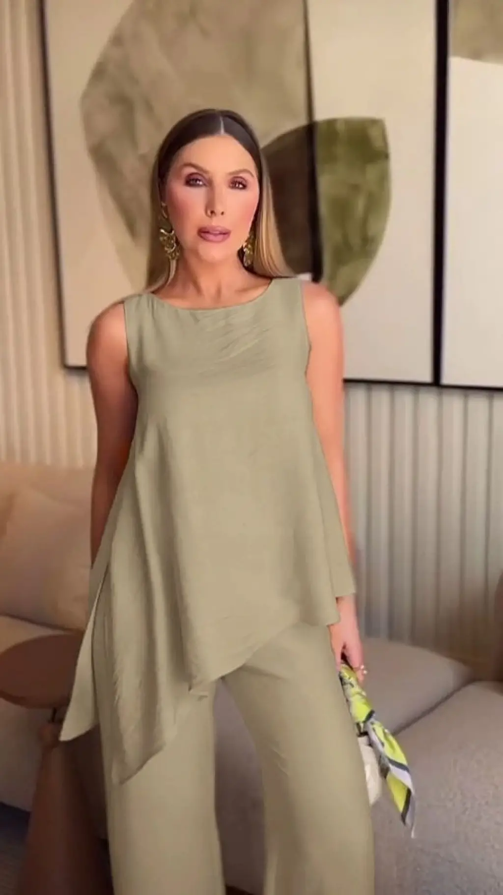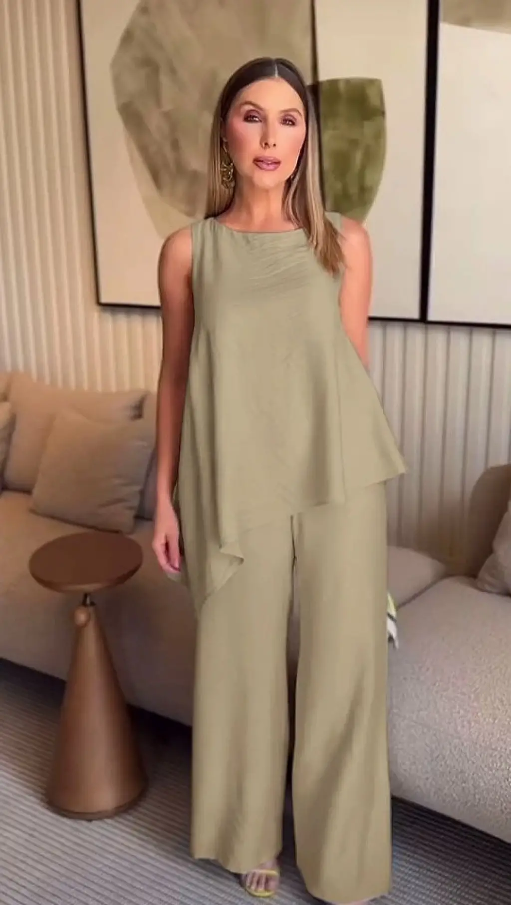 Kadın Kolu Katlanır Düğme Detay Hakim Yaka Bluz Ve Pantolon Sofia Keten Kumaş Ikili Takim