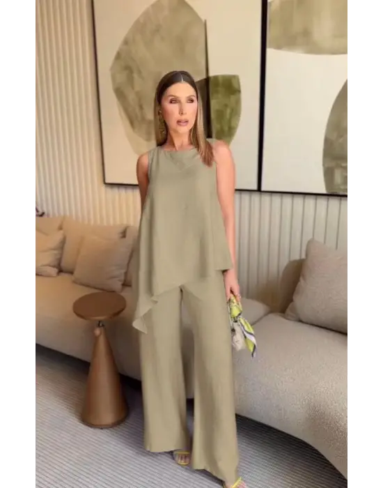 Kadın Askılı Asimetrik Kesim Kol Ve Yaka Kolda Tül Ve Aksesuar Detaylı Janjan Krep Bluz