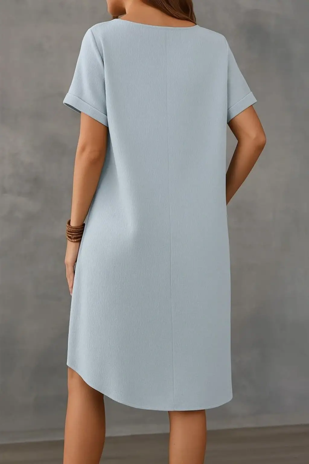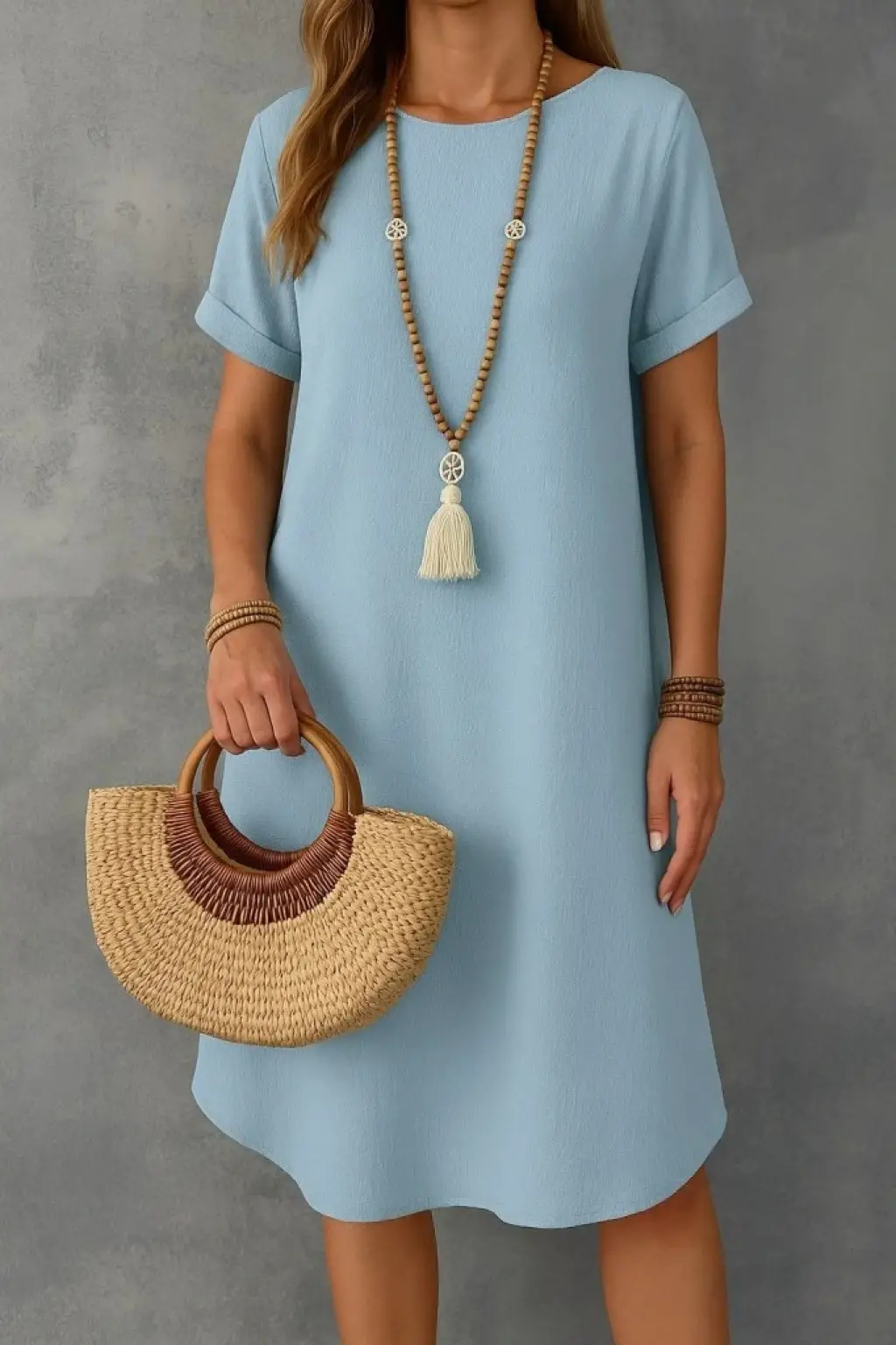 Kadın Kısa Kollu Kayık Yaka Bürümcük Elbise
