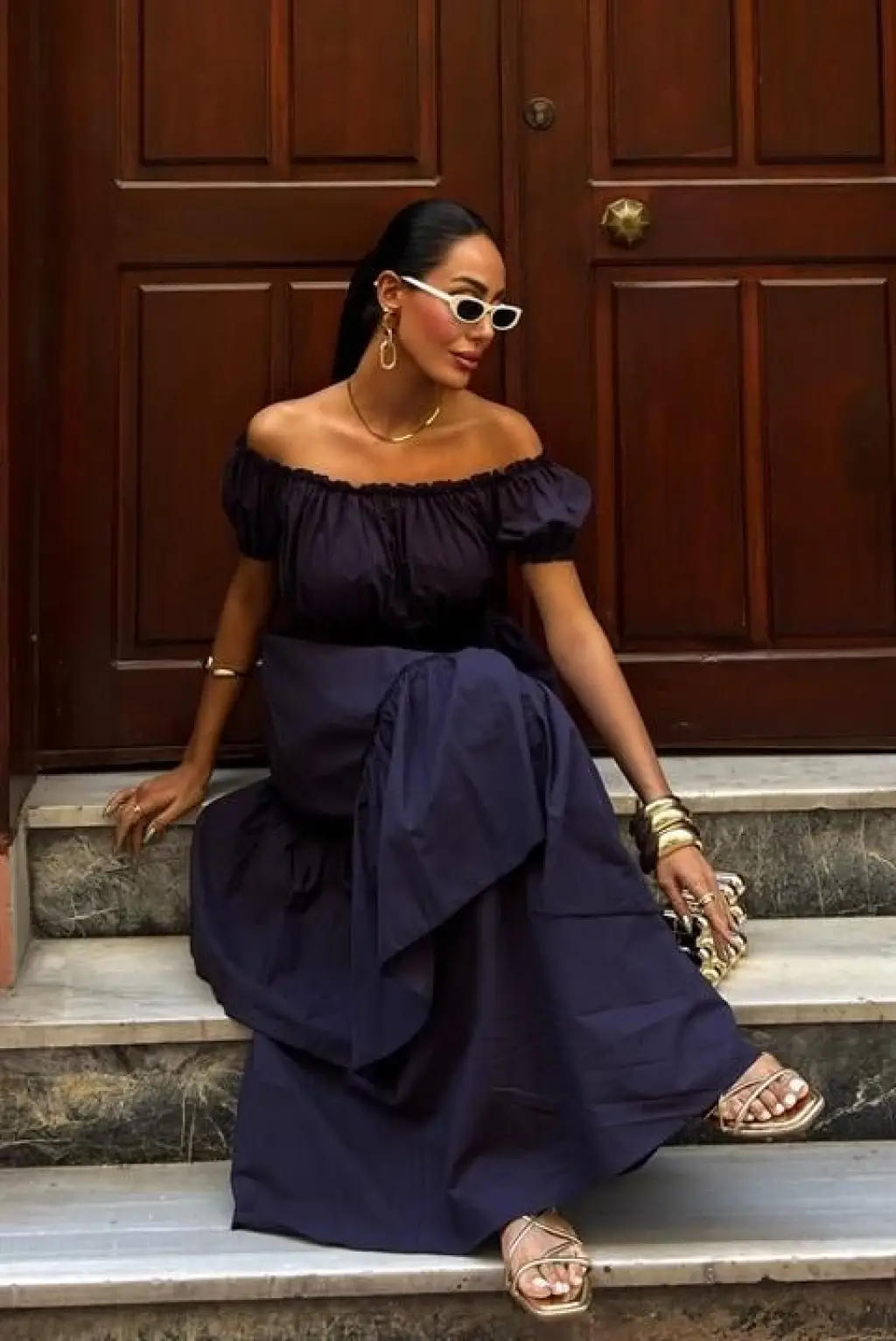 6678 Keten Tunik Pantolon İkili Takım - İndigo