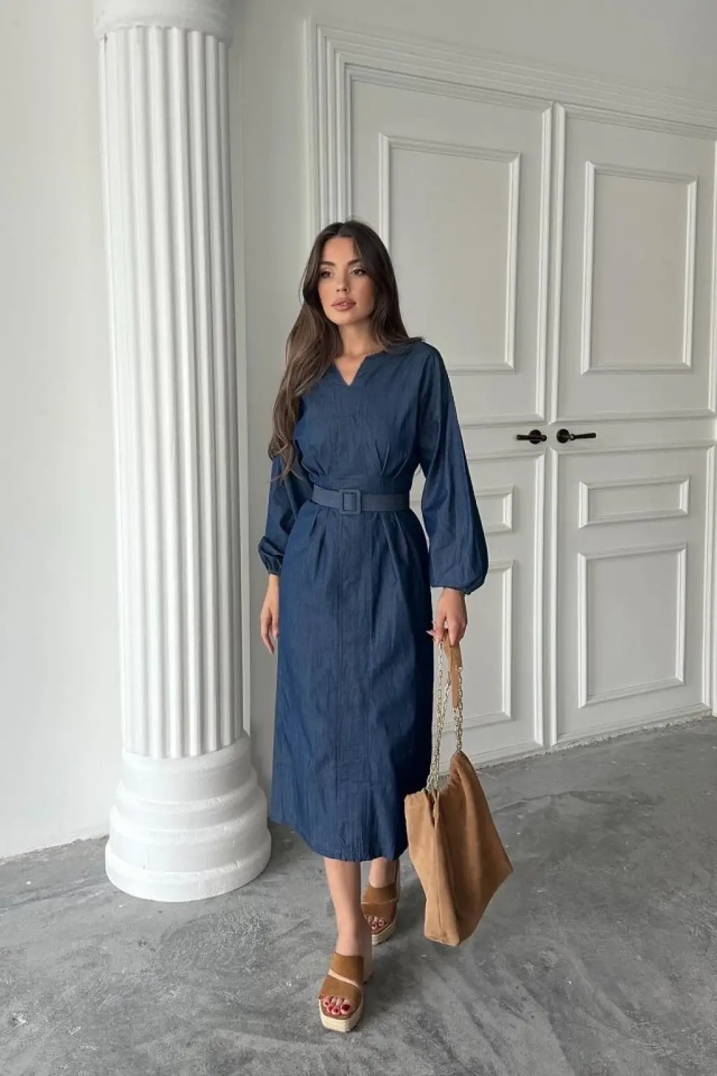 Mavi Benorra Uzun Kollu Elbise