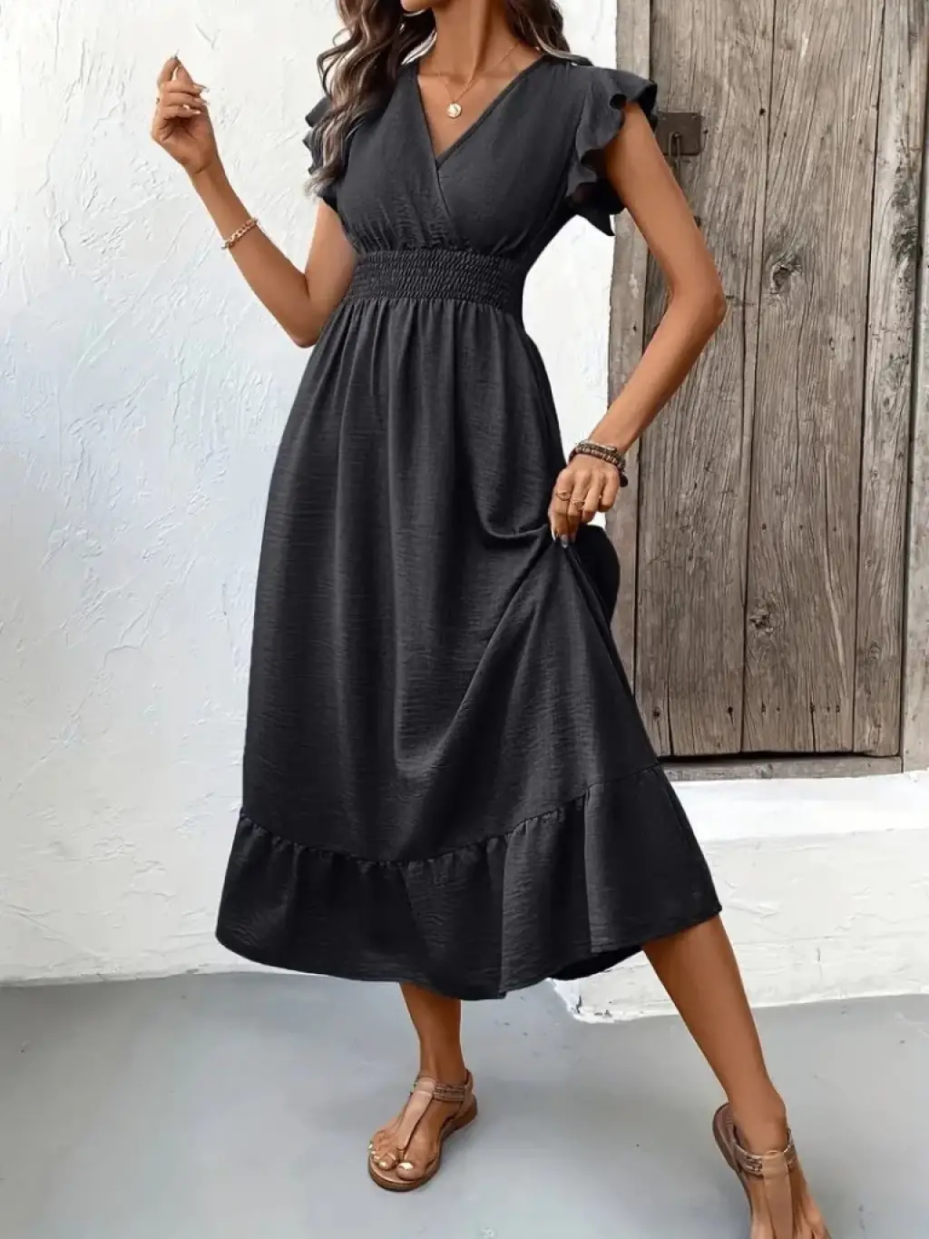 Kadın Kısa Kollu V Yaka Maxi Boy Elbise 124 Cm