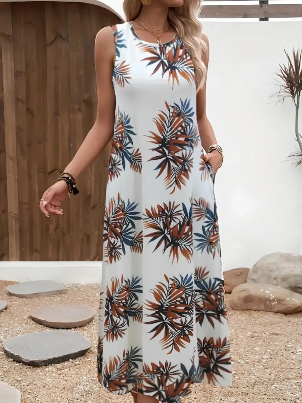 Kadın Askılı Yuvarlak Yaka Cepli Desenli Süprem Elbise