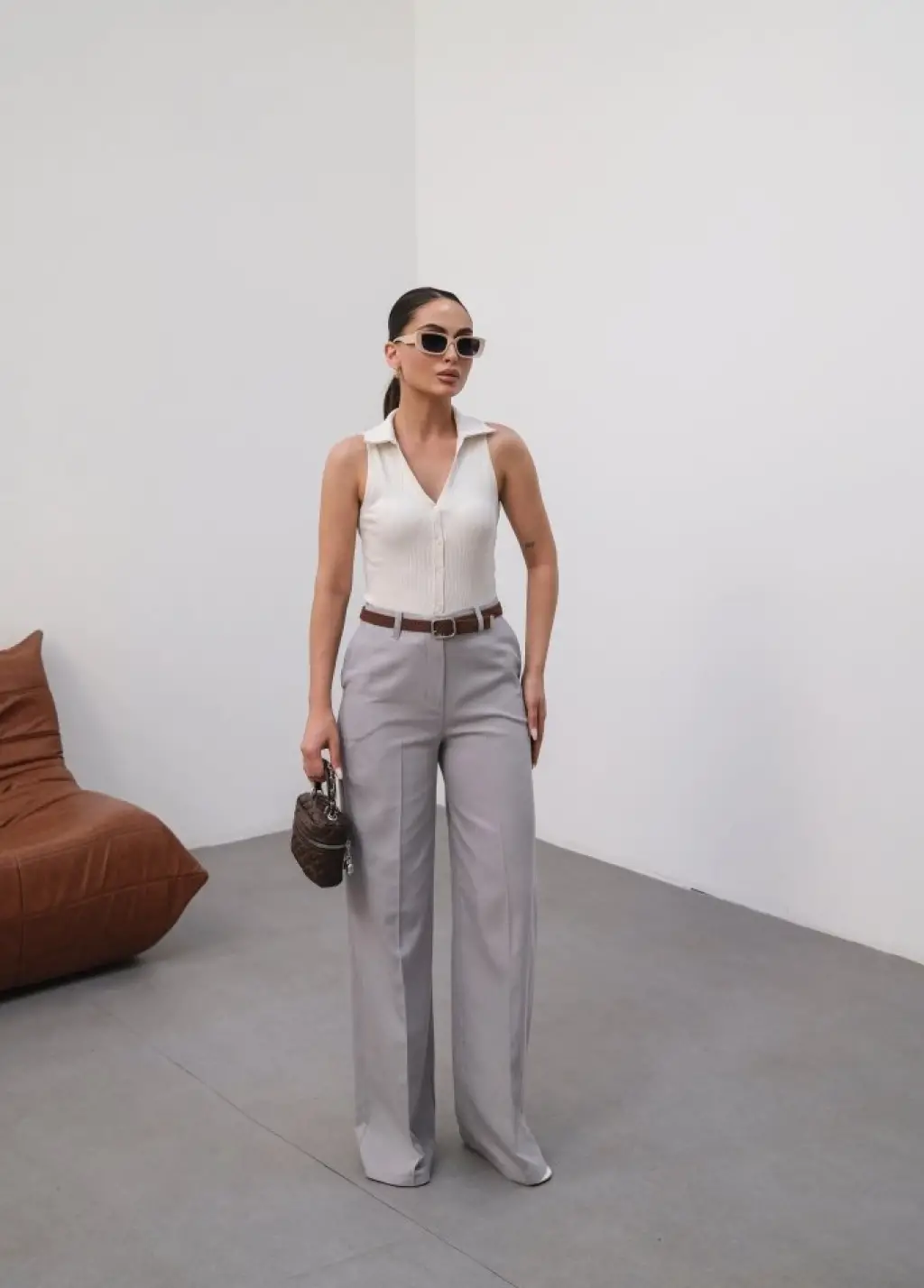 Keten Kemerli̇ Ve Dökümlü Palazzo Pantolon (Kemer Dahi̇l)
