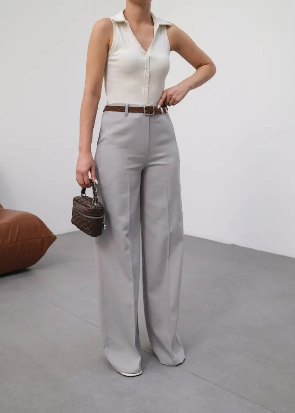 Geniş Paça Pileli Pantolon 6718 - Krem