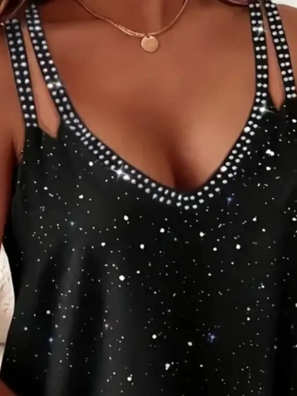Kadın çift Askılı Derin V Yakalı Taşlı Sandy Bluz