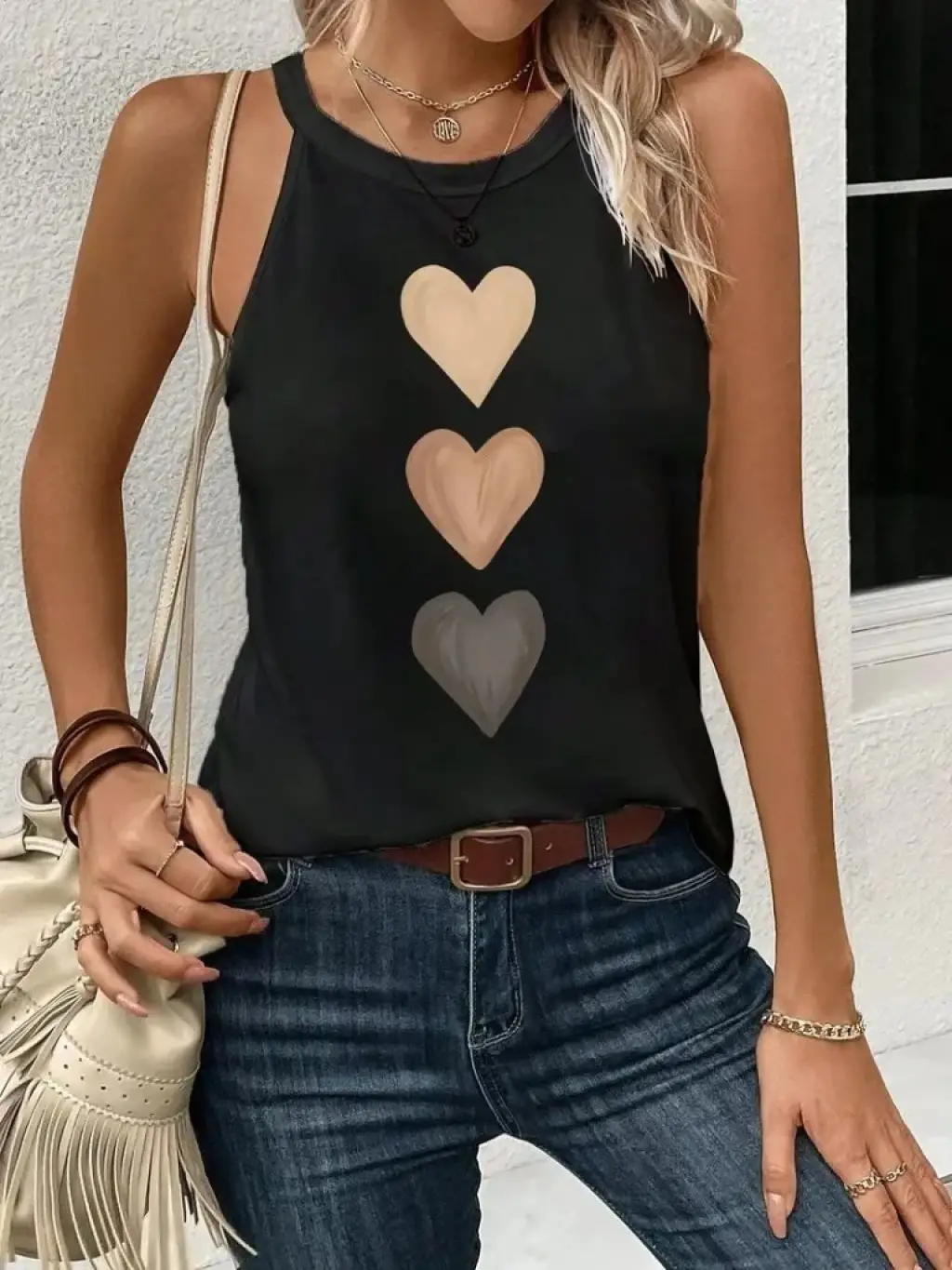 Kadın Omuzlardan Açık Boyundan Askılı Kalp Baskılı Viskon Bluz