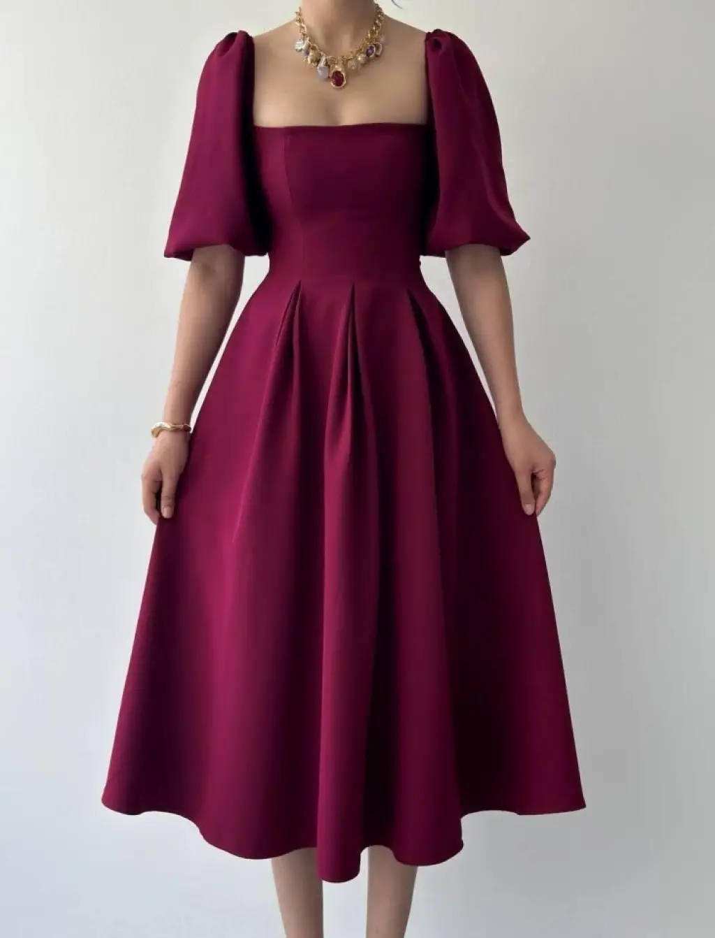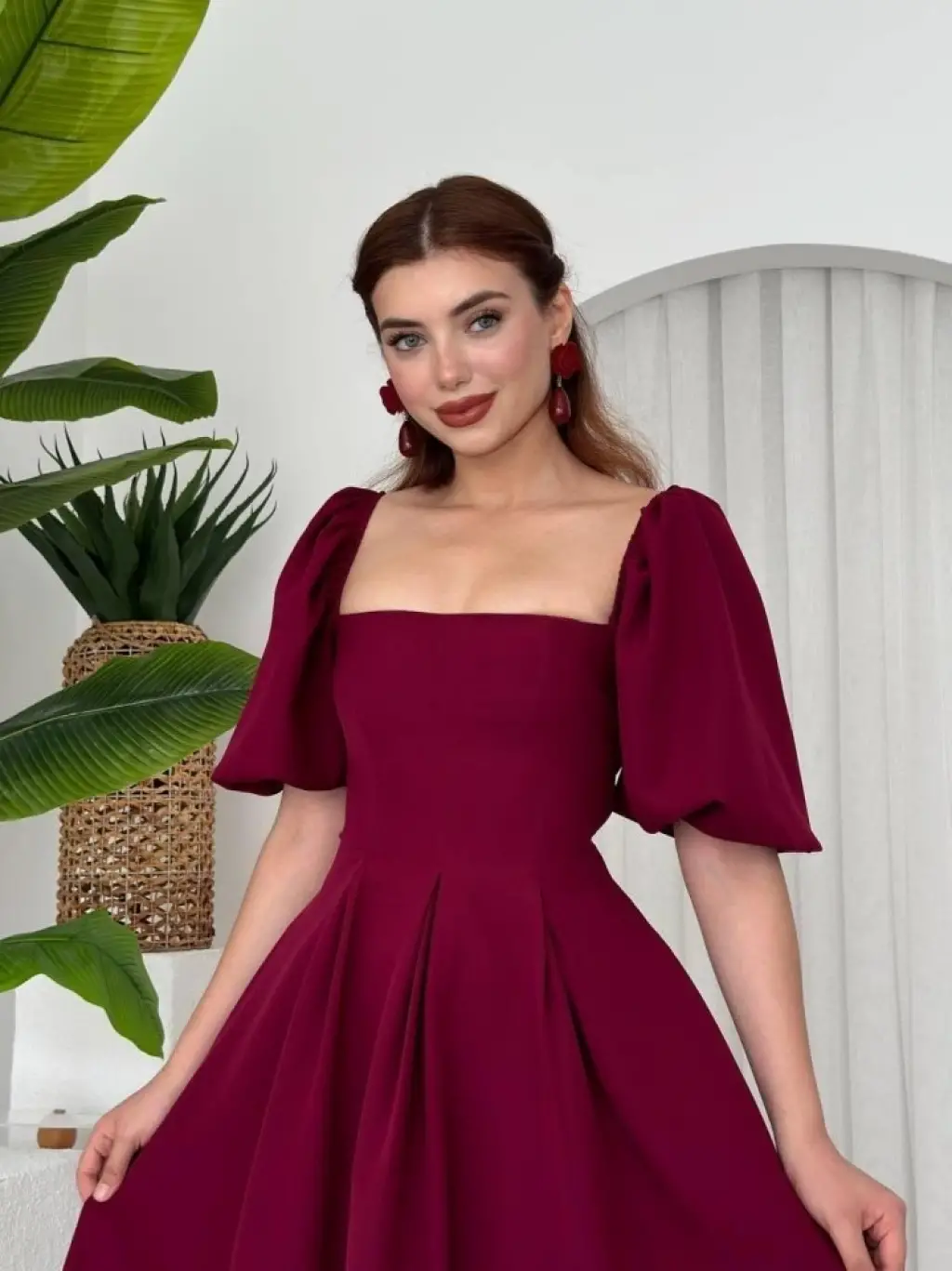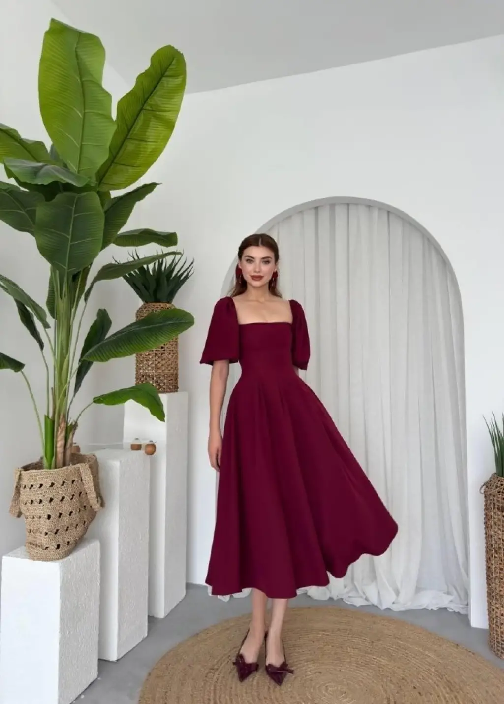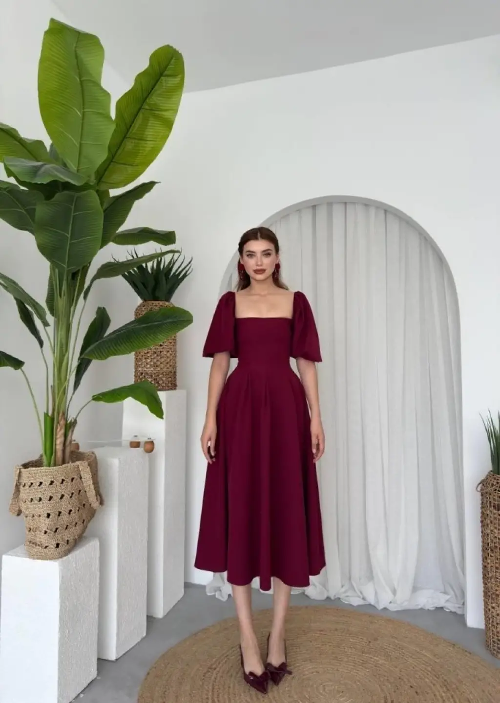 Kadın Kısa Kollu önden Düğmeli Ithal Keten Elbise
