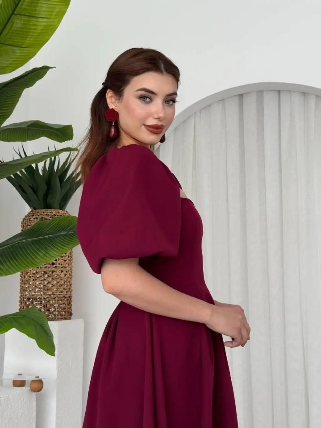 Kadın Dalgıç Kumaş V Yaka Yırtmaç Detaylı Maxi Boy Elbise