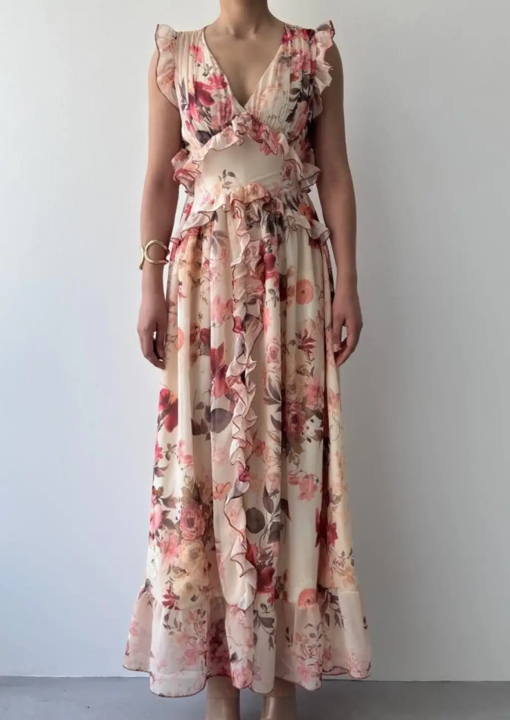 Kadın Kısa Kollu V Yakalı Maksi Boy Viskon Elbise