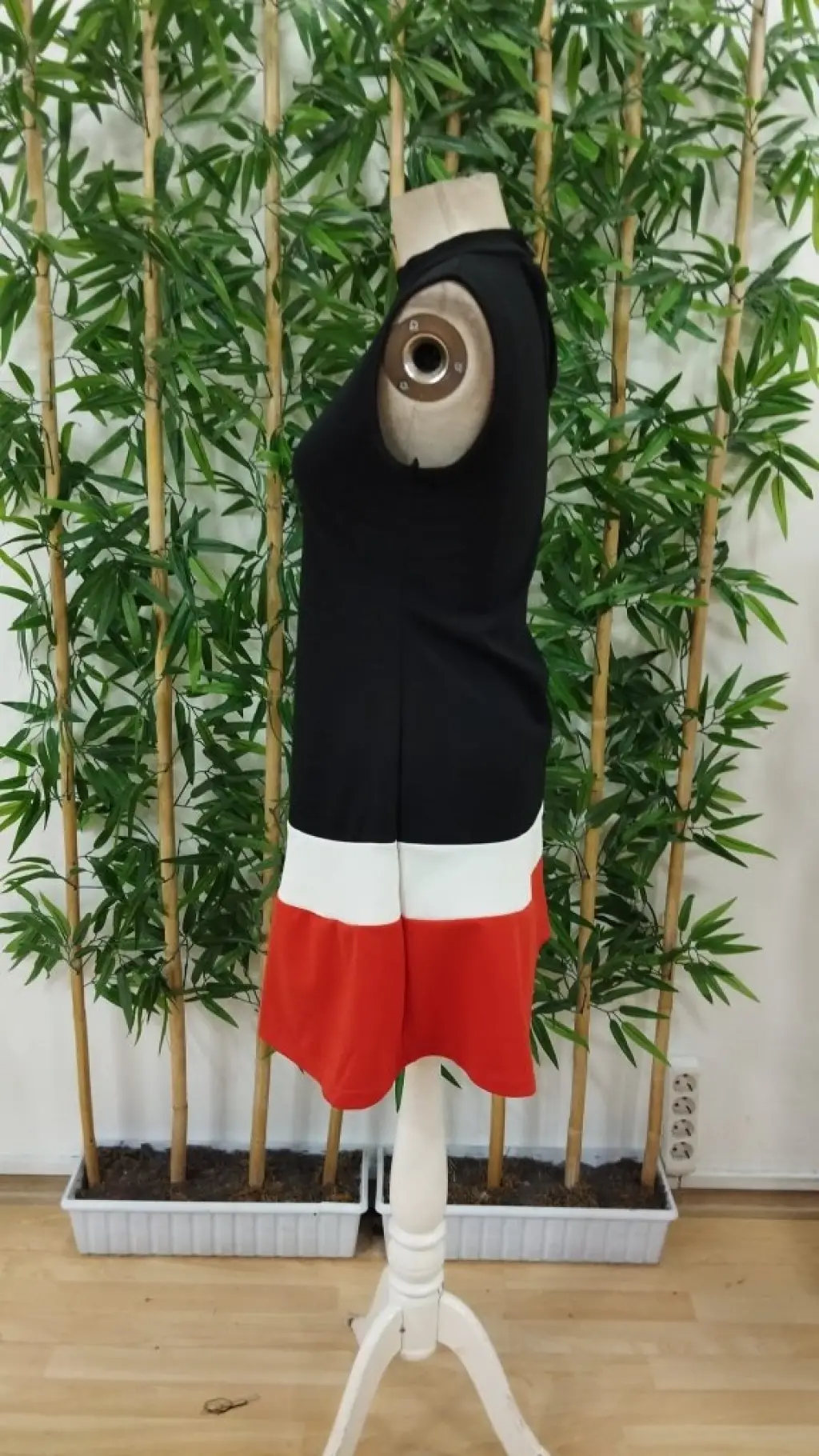 Kadın Sıfır Kol Yarı Balıkçı Yaka şerit Detaylı Ithal Krep Elbise
