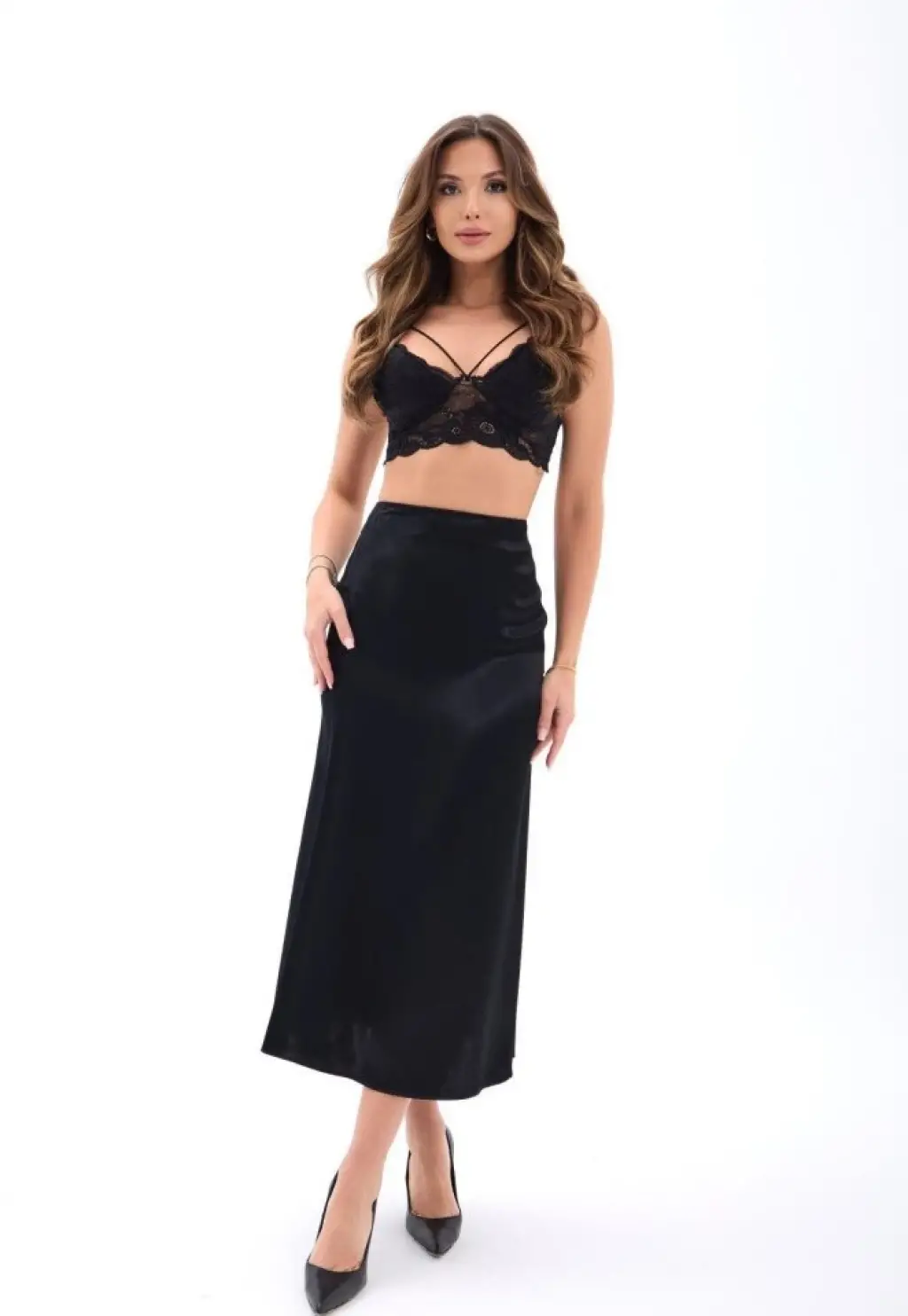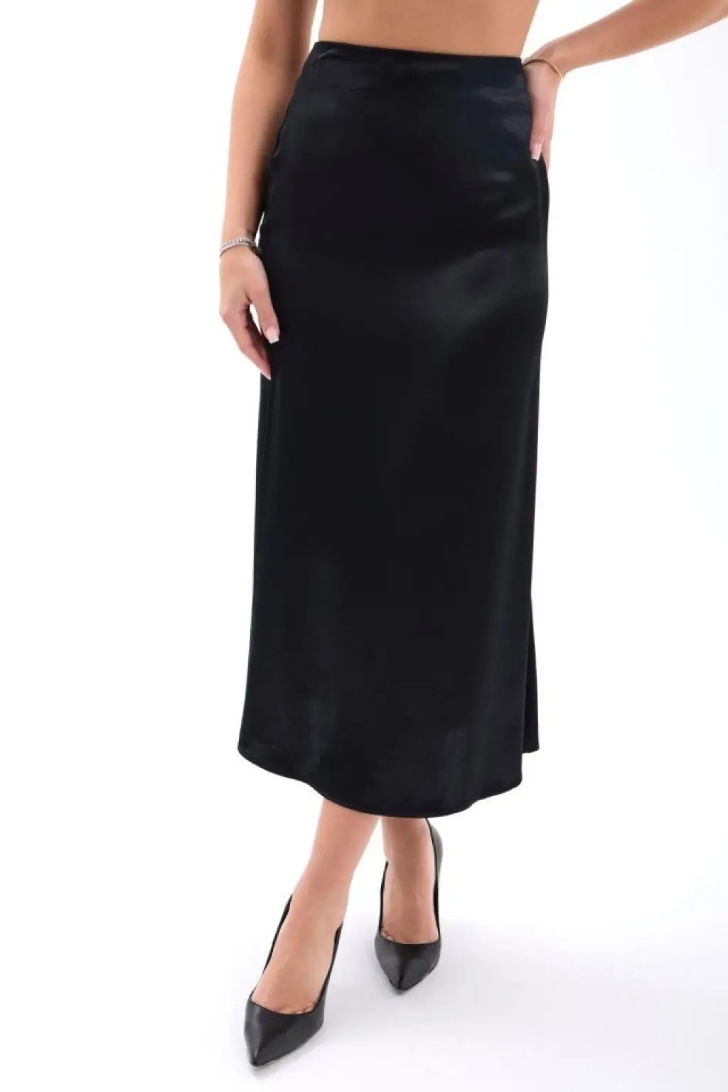 Kadın Beli Büzgülü Yandan Yırtmaçlı Desenli Süprem Etek