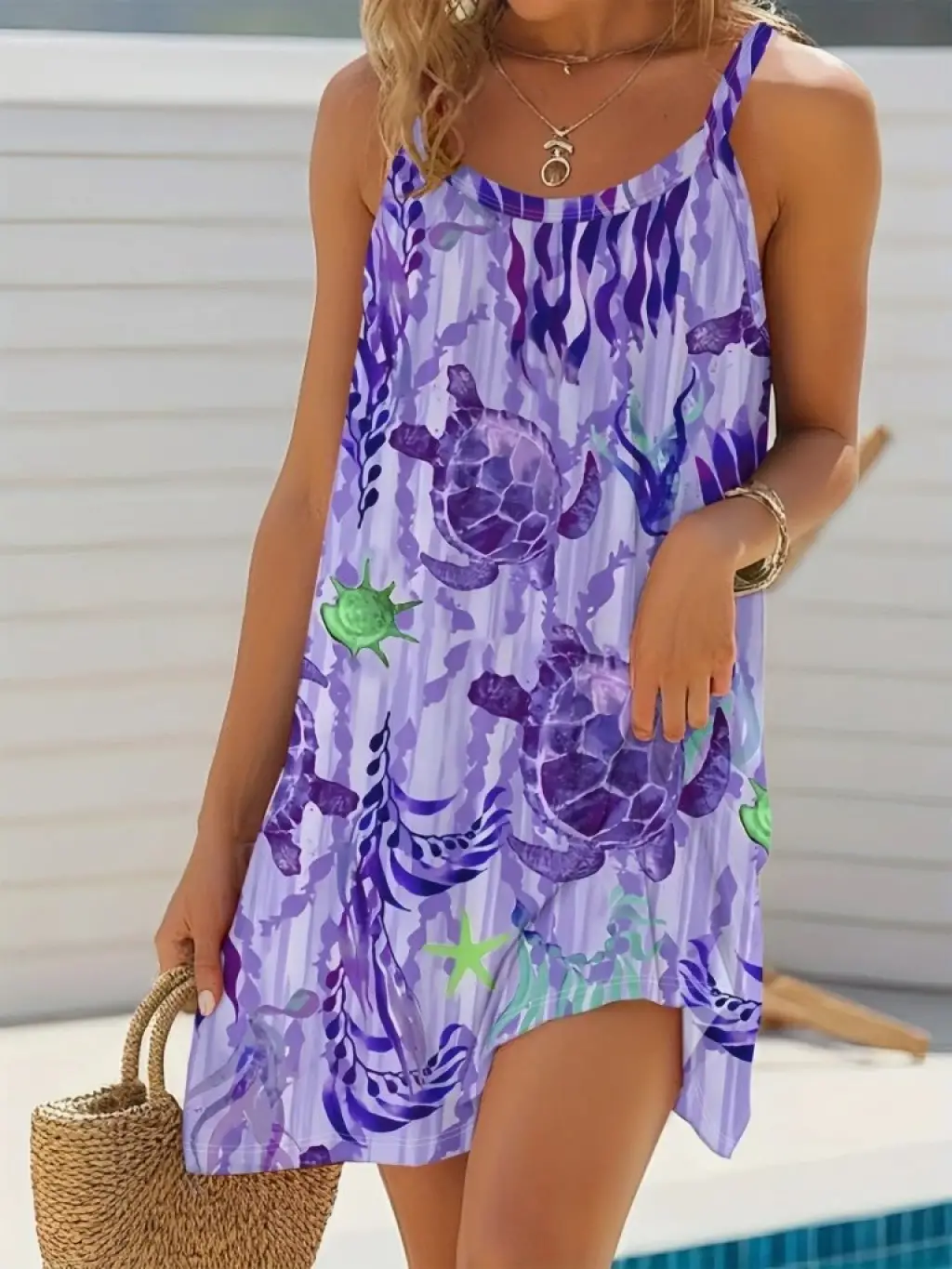 Kadın Askılı Yuvarlak Yaka Kaplumbağa Desenli Süprem Elbise
