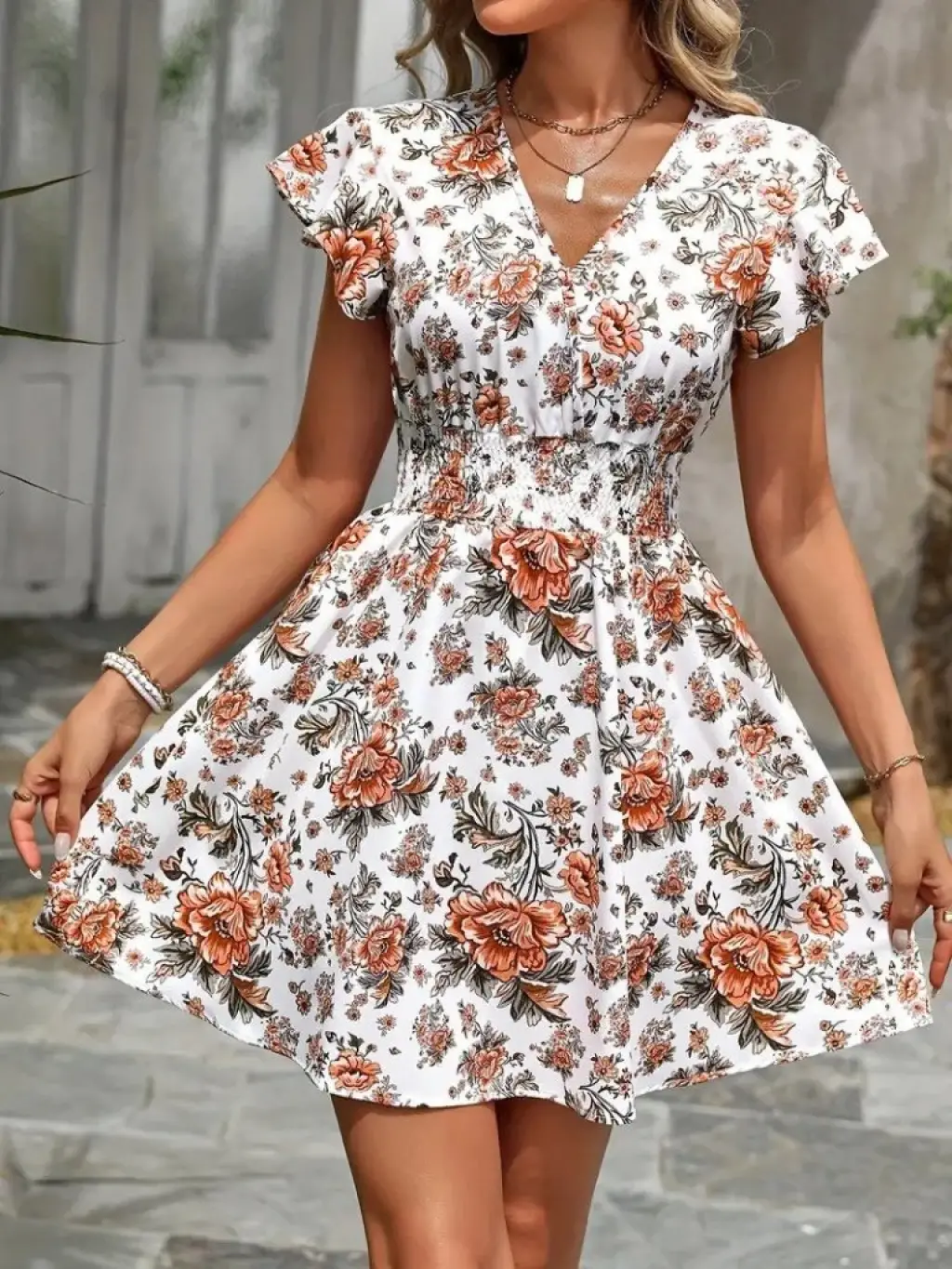 Kadın Kısa Kollu Kruvaze Yakalı çiçek Desenli Süprem Elbise