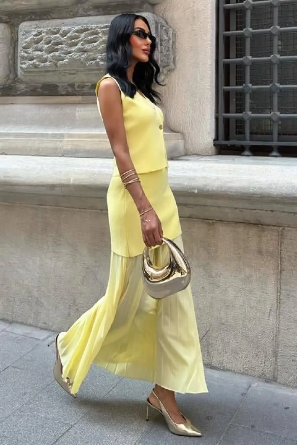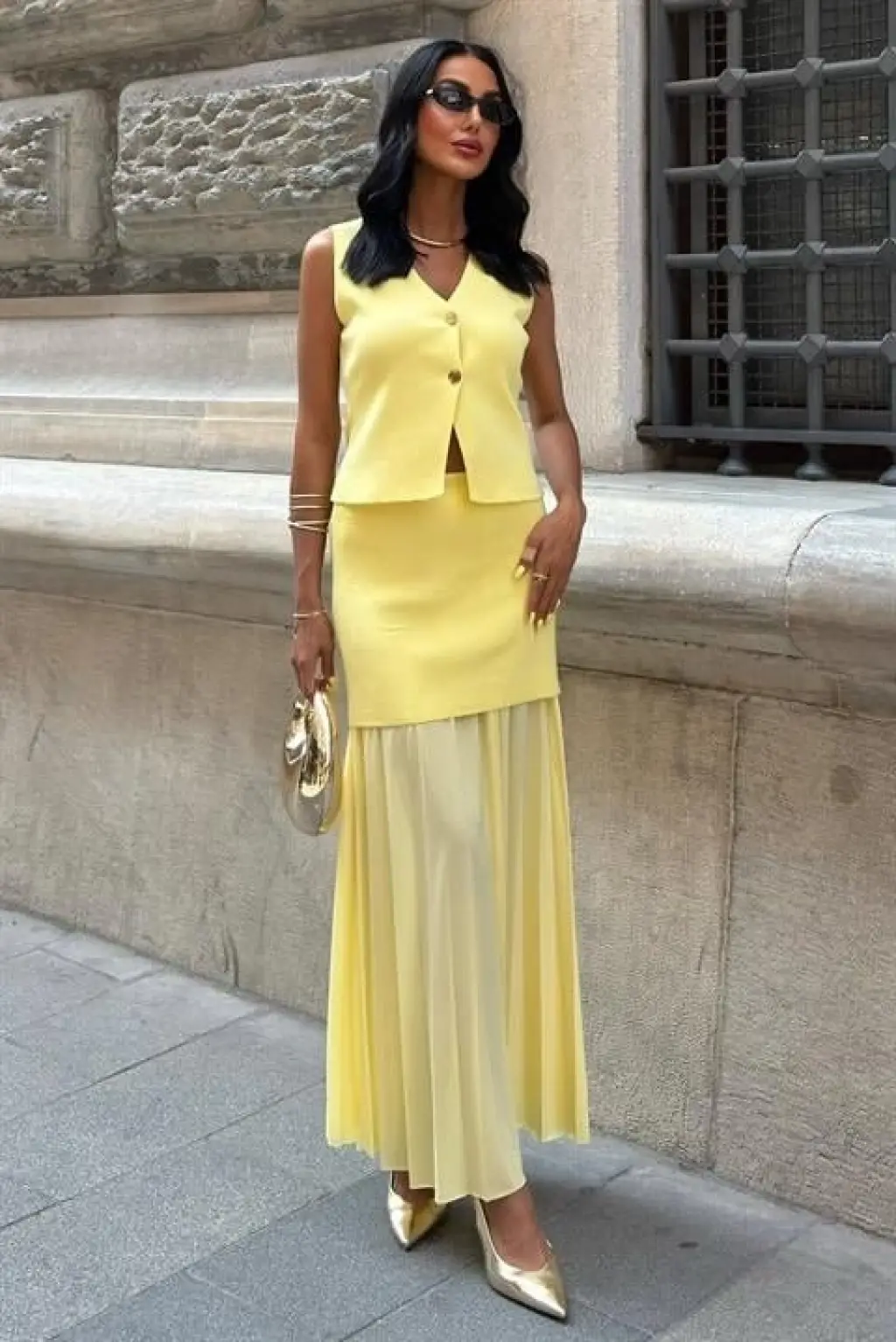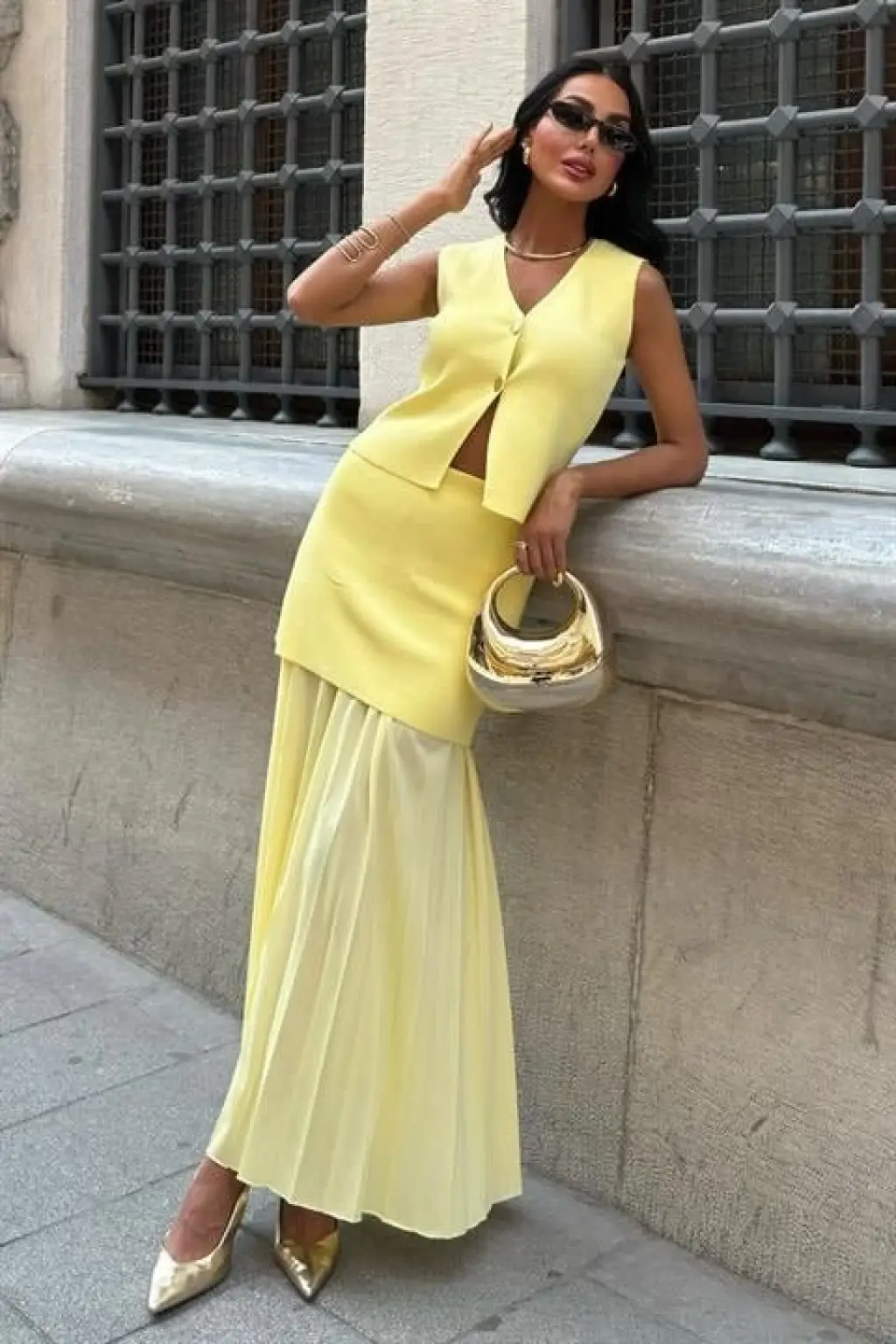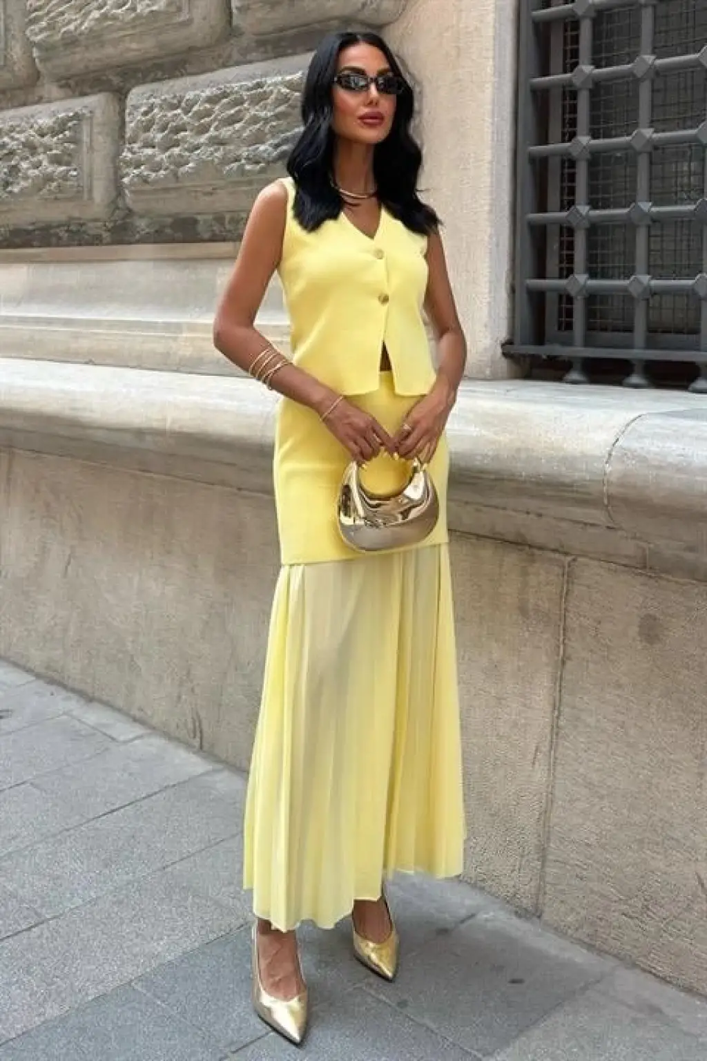 Yelekli Ve Pilise Etekli Triko Takım 10001