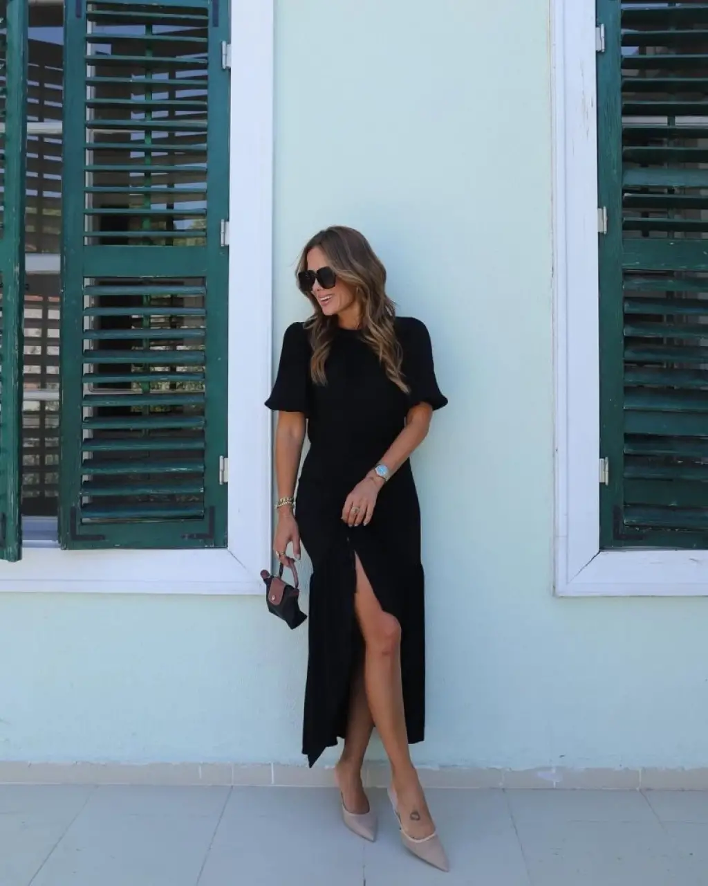 Kadın Truvakar Kollu V Yakalı Yırtmaçlı Uzun Aerobin Elbise